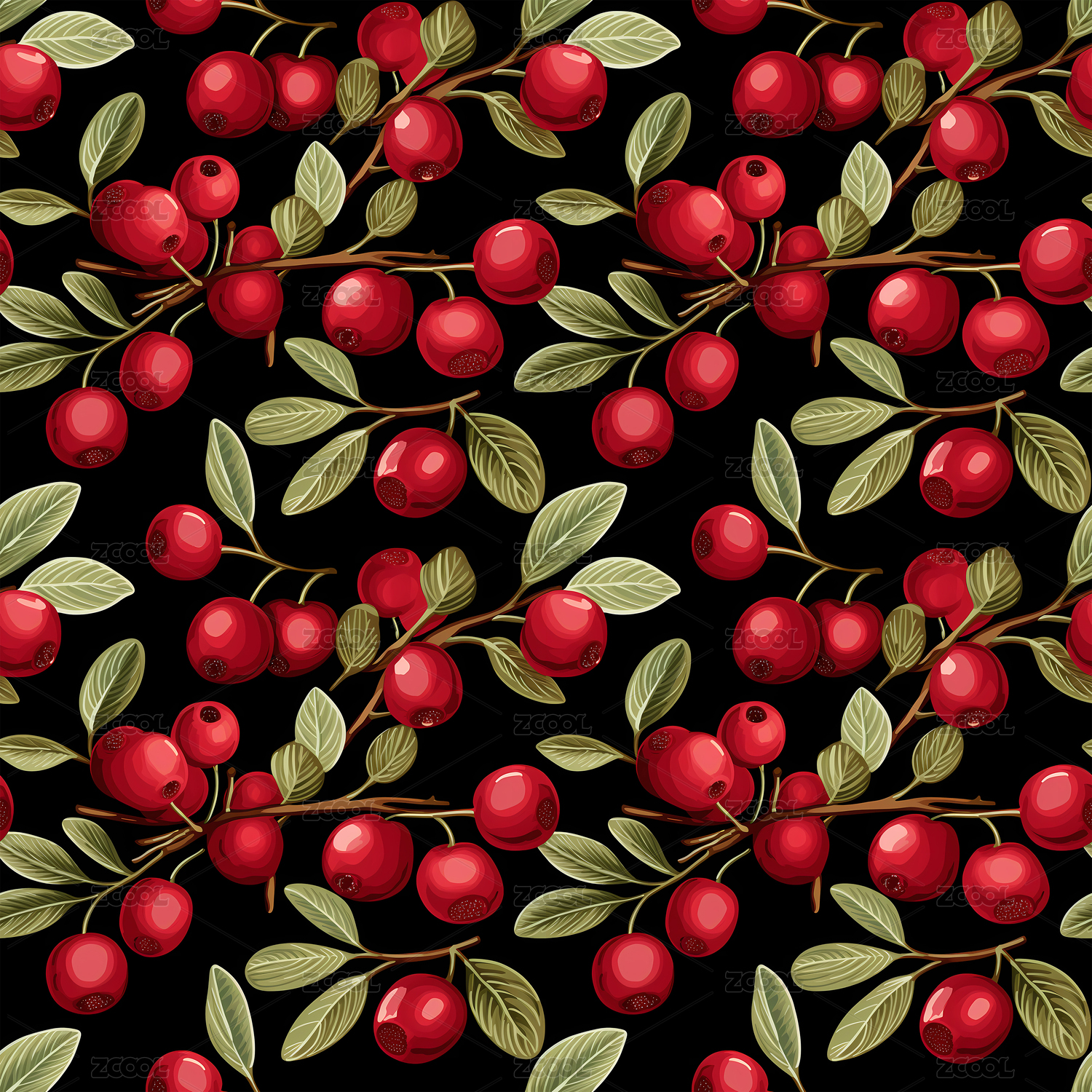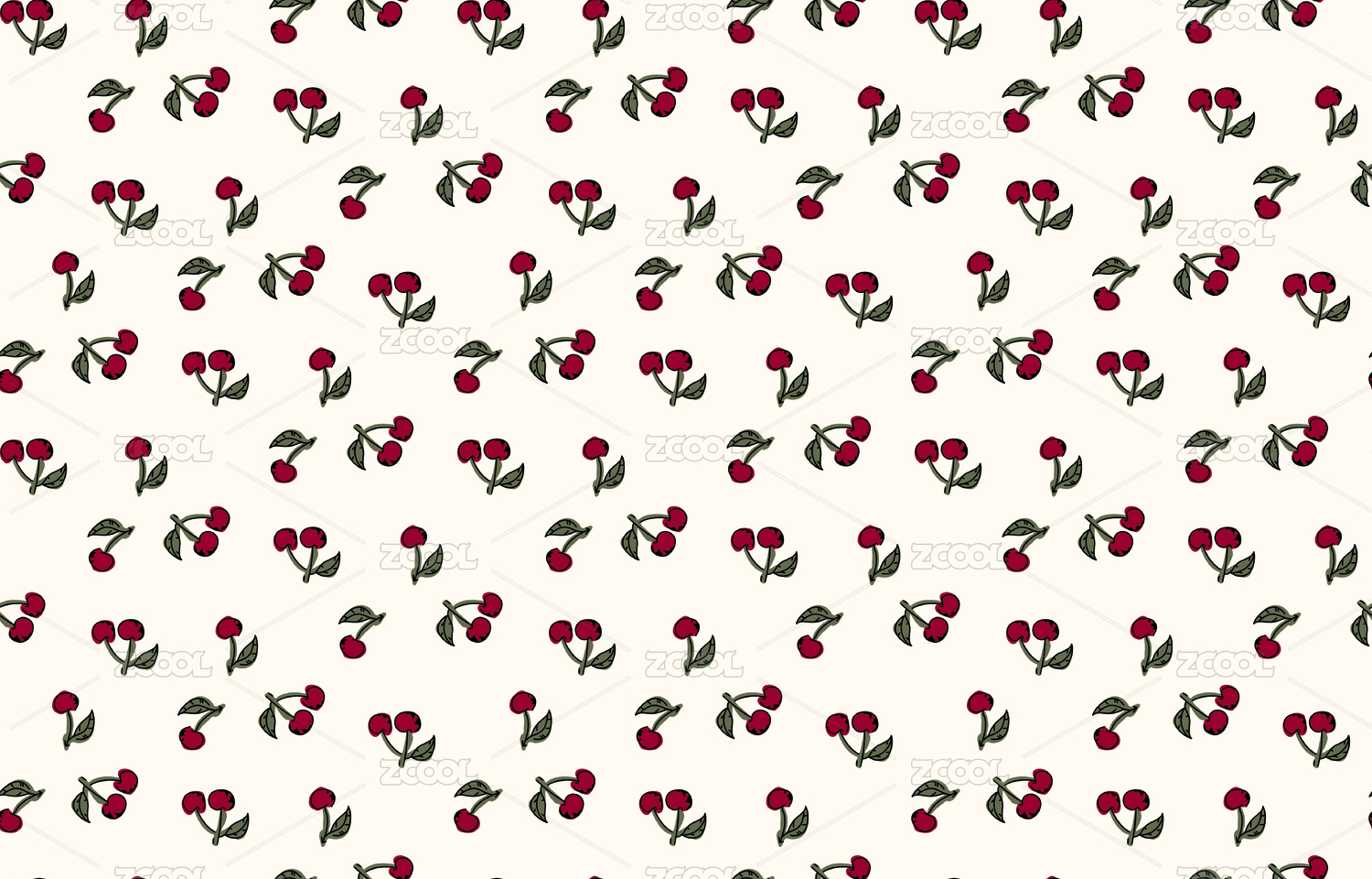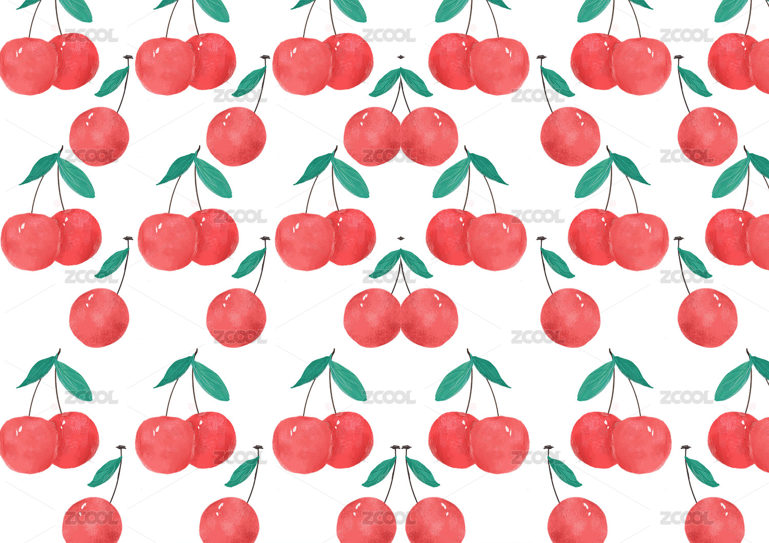 夏日樱桃水果系列手绘插画无缝壁纸背景