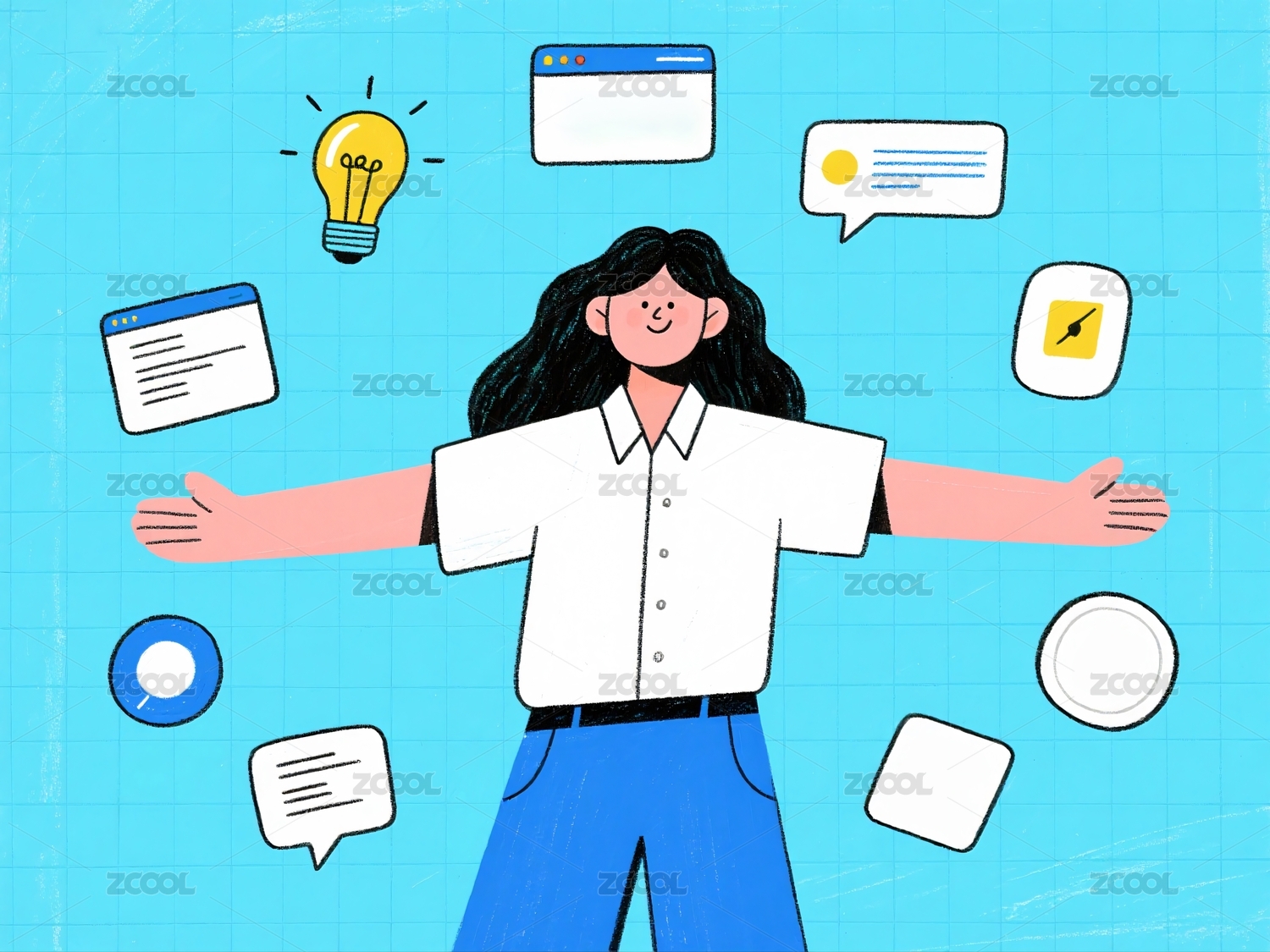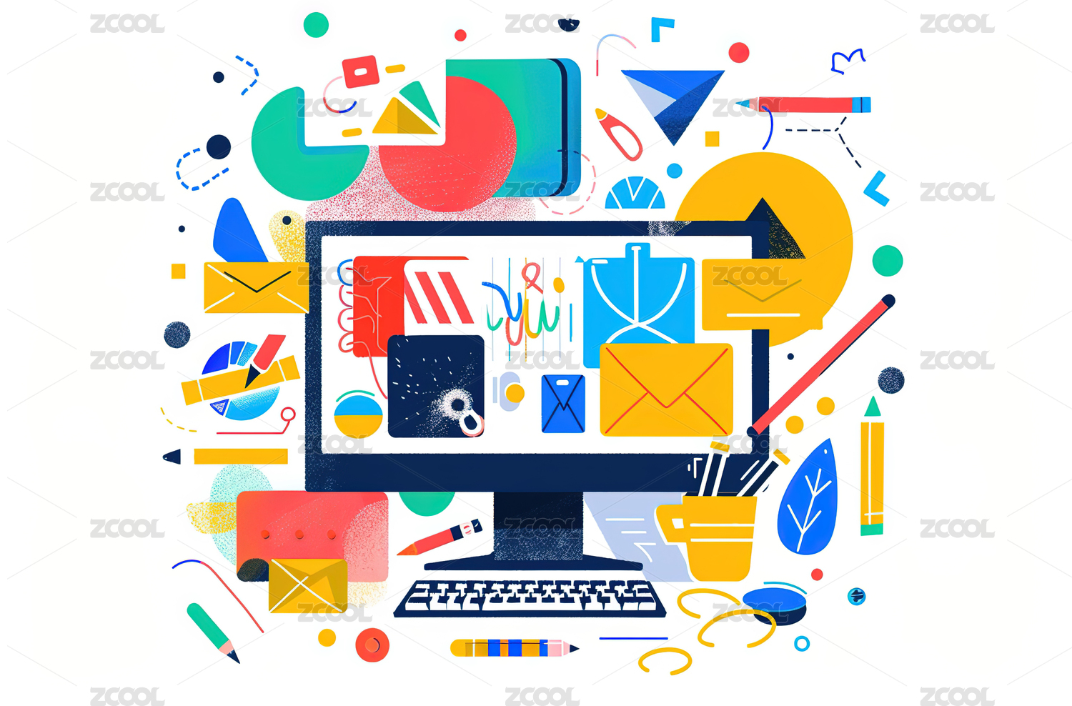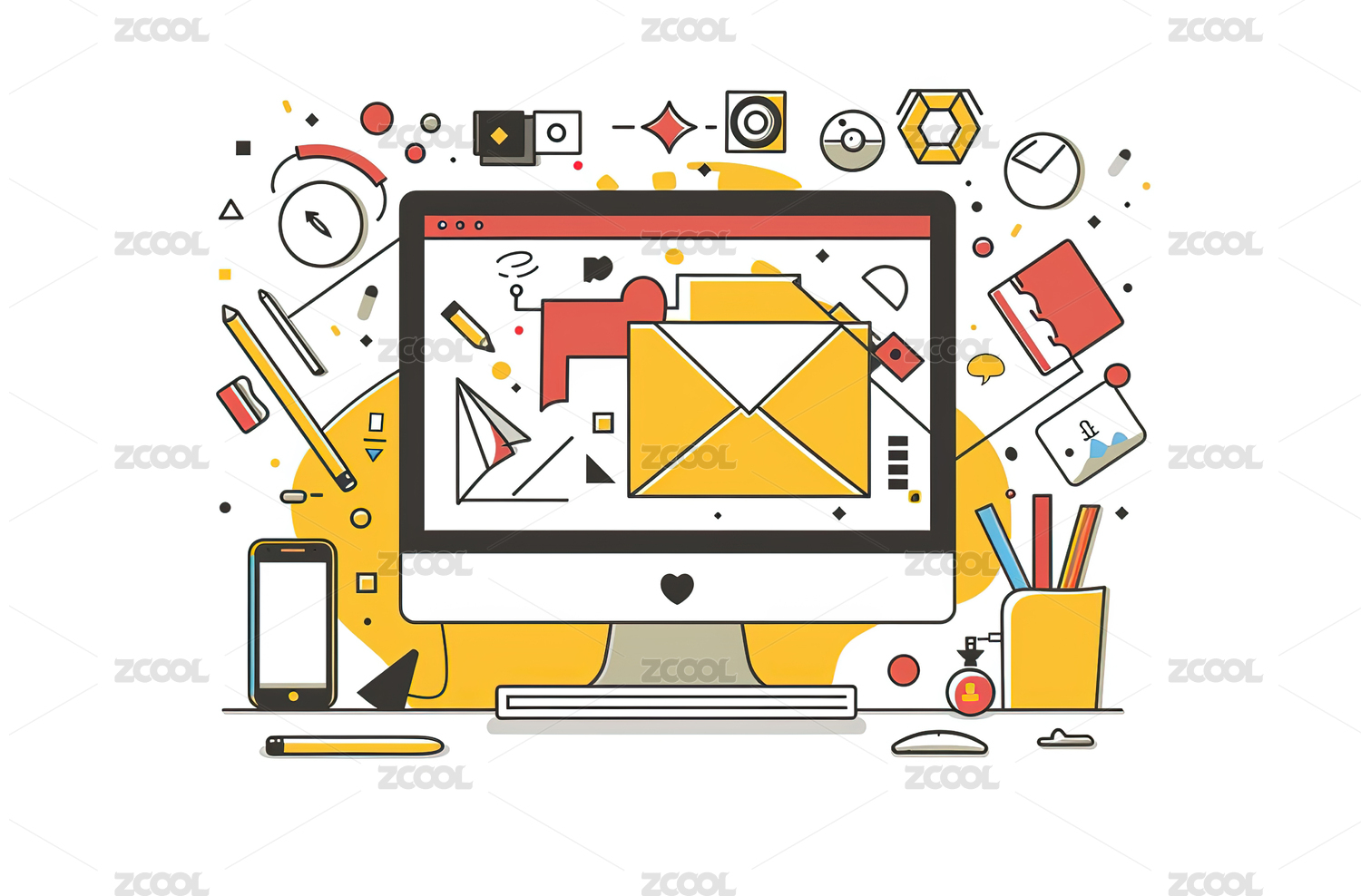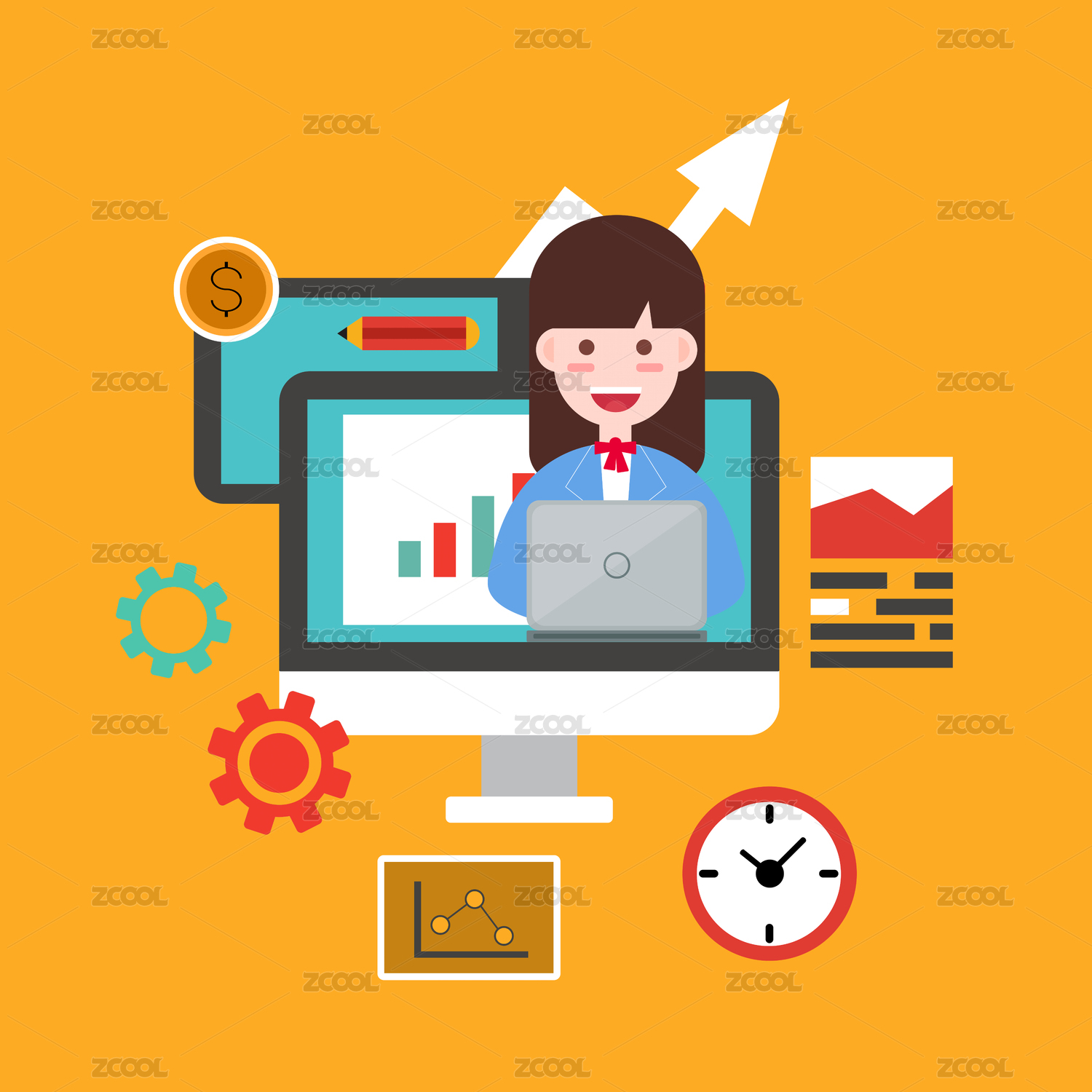 白领女子通过电脑查看邮件获取更多信息,概念插画