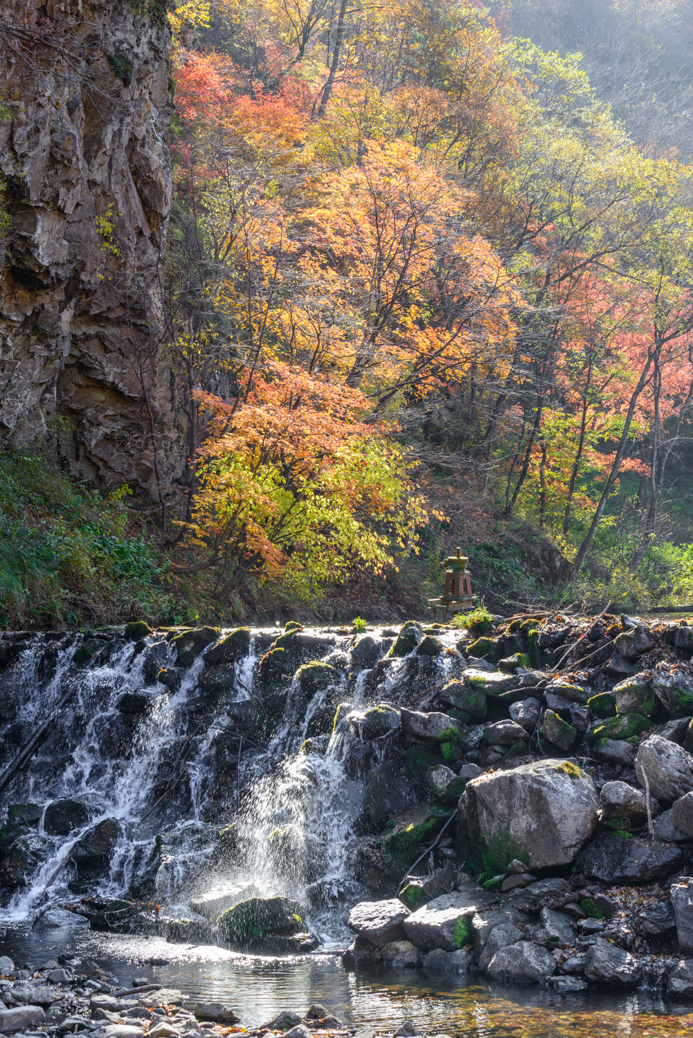 辽宁本溪大冰沟秋季枫叶岩石瀑布风光