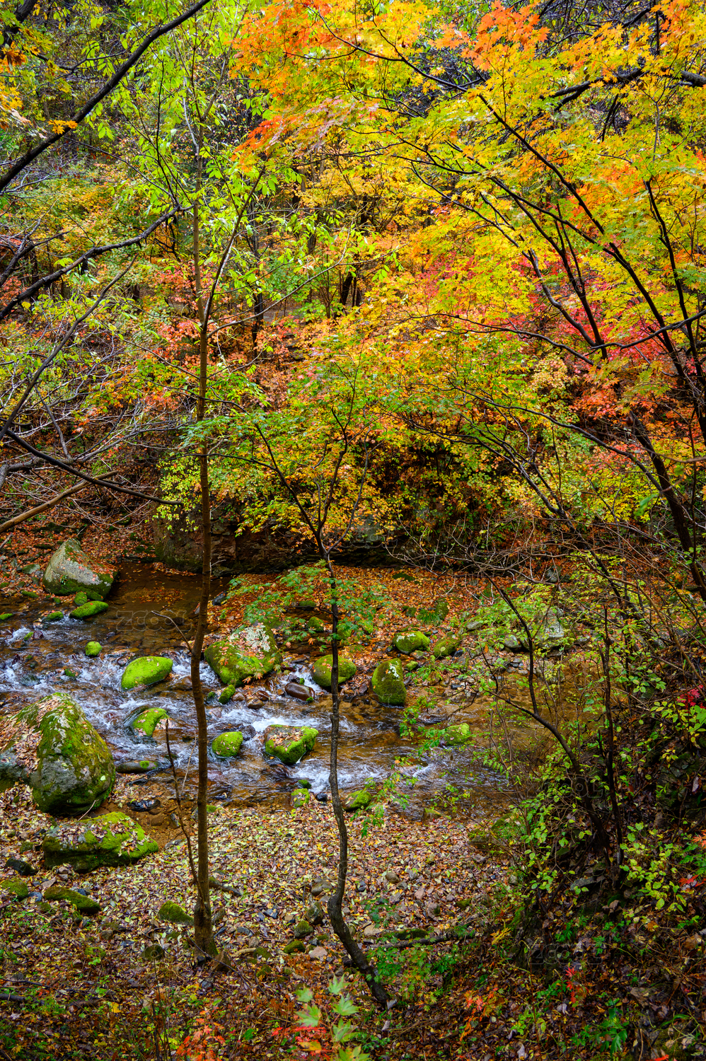沈阳本溪老边沟 秋天枫树红叶溪流自然风光