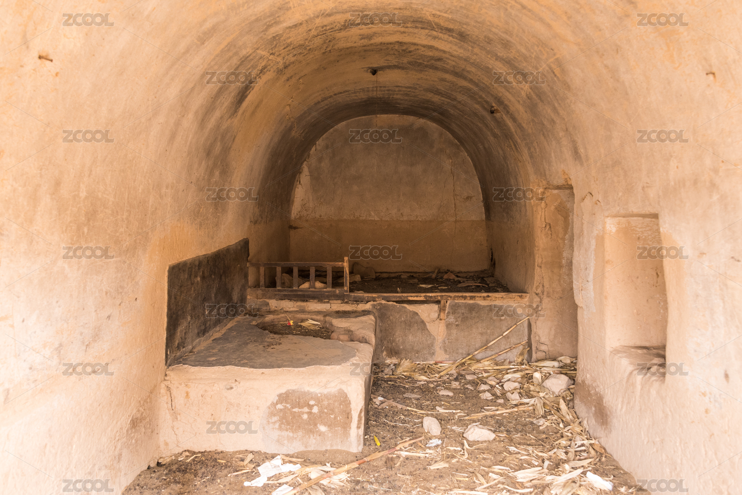 北京延庆古崖居风景区岩石上开凿的内部居室