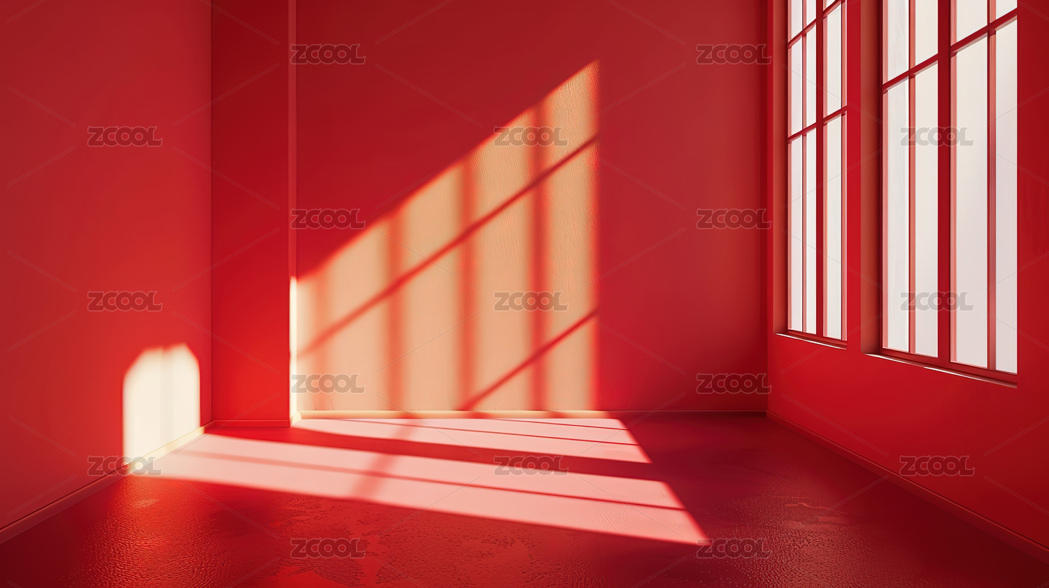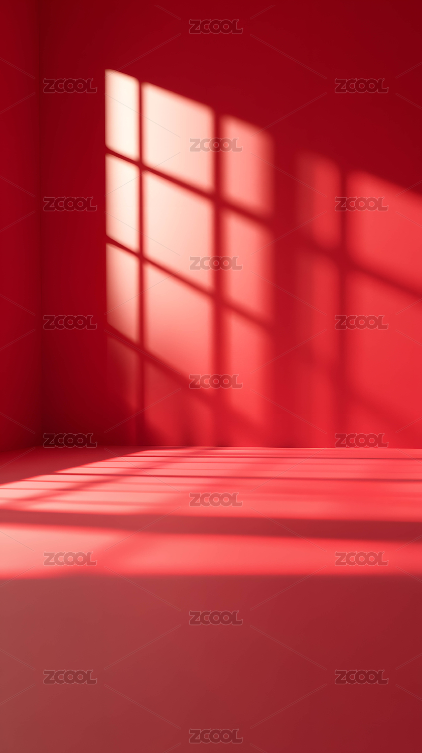 阳光洒落的红色空间