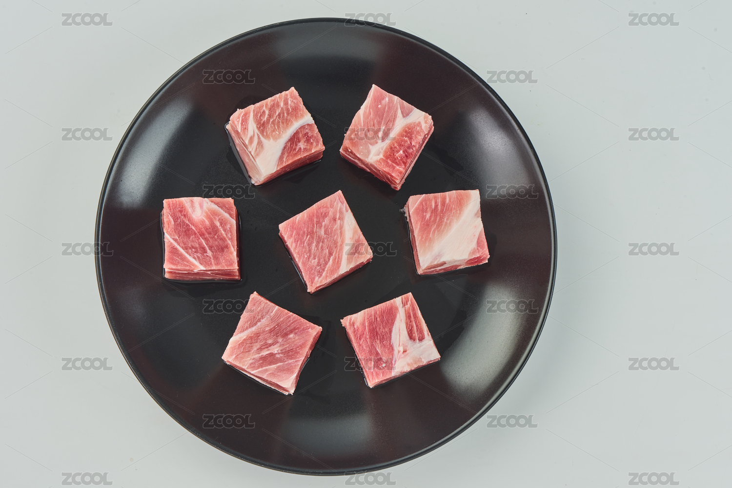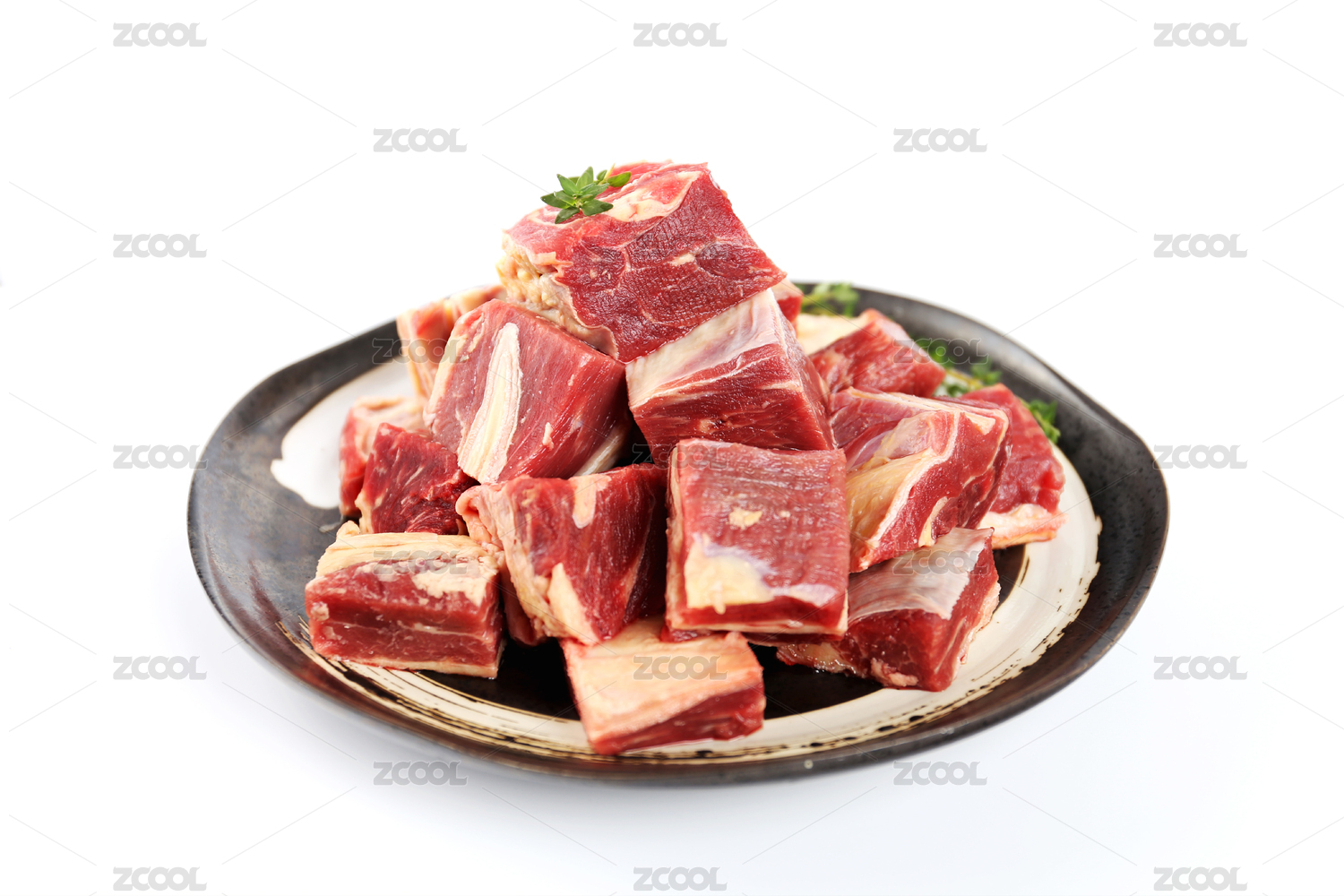 新鲜的牛肉块牛腩块摆放在桌面上特写