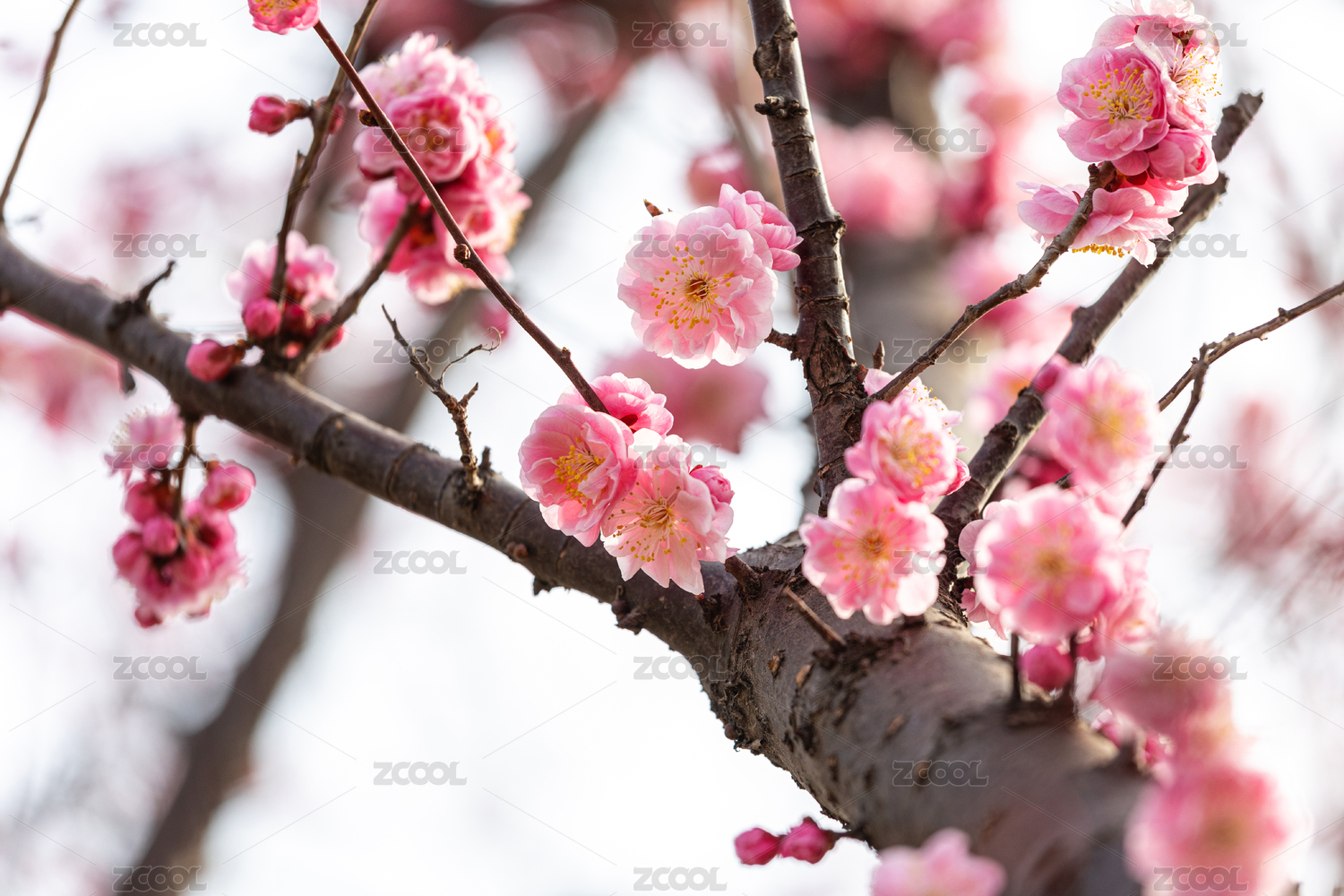 梅,冬,不折,坚强,花,红,朱砂,特写,花枝