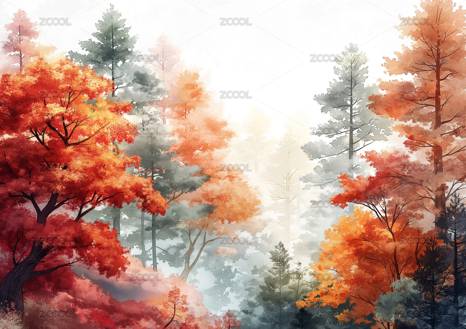 无人,自然,秋天,叶子,AI数字艺术,树,户外,白昼,插画,季节