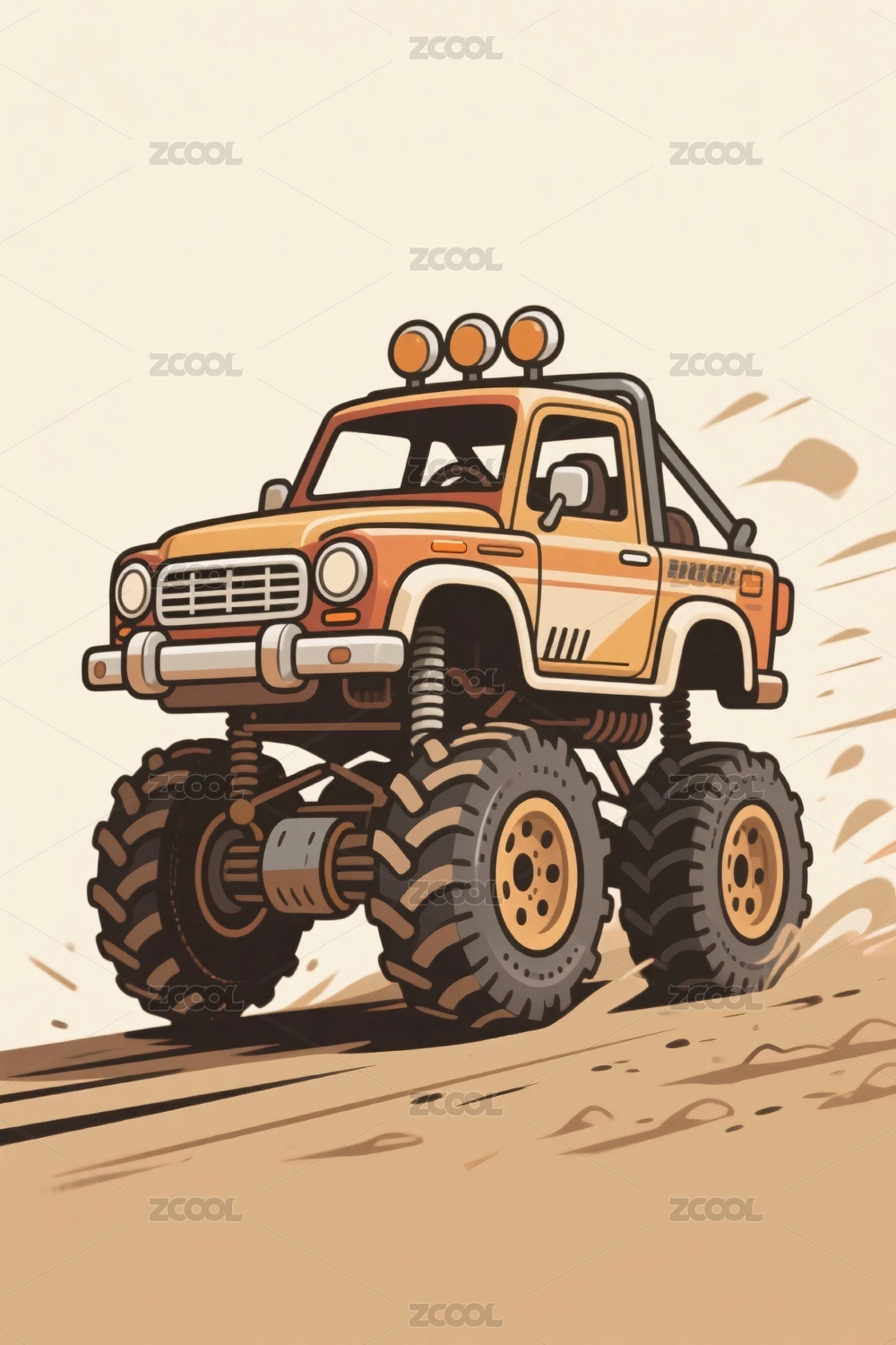 一辆越野车正在沙漠上行驶矢量扁平插画
