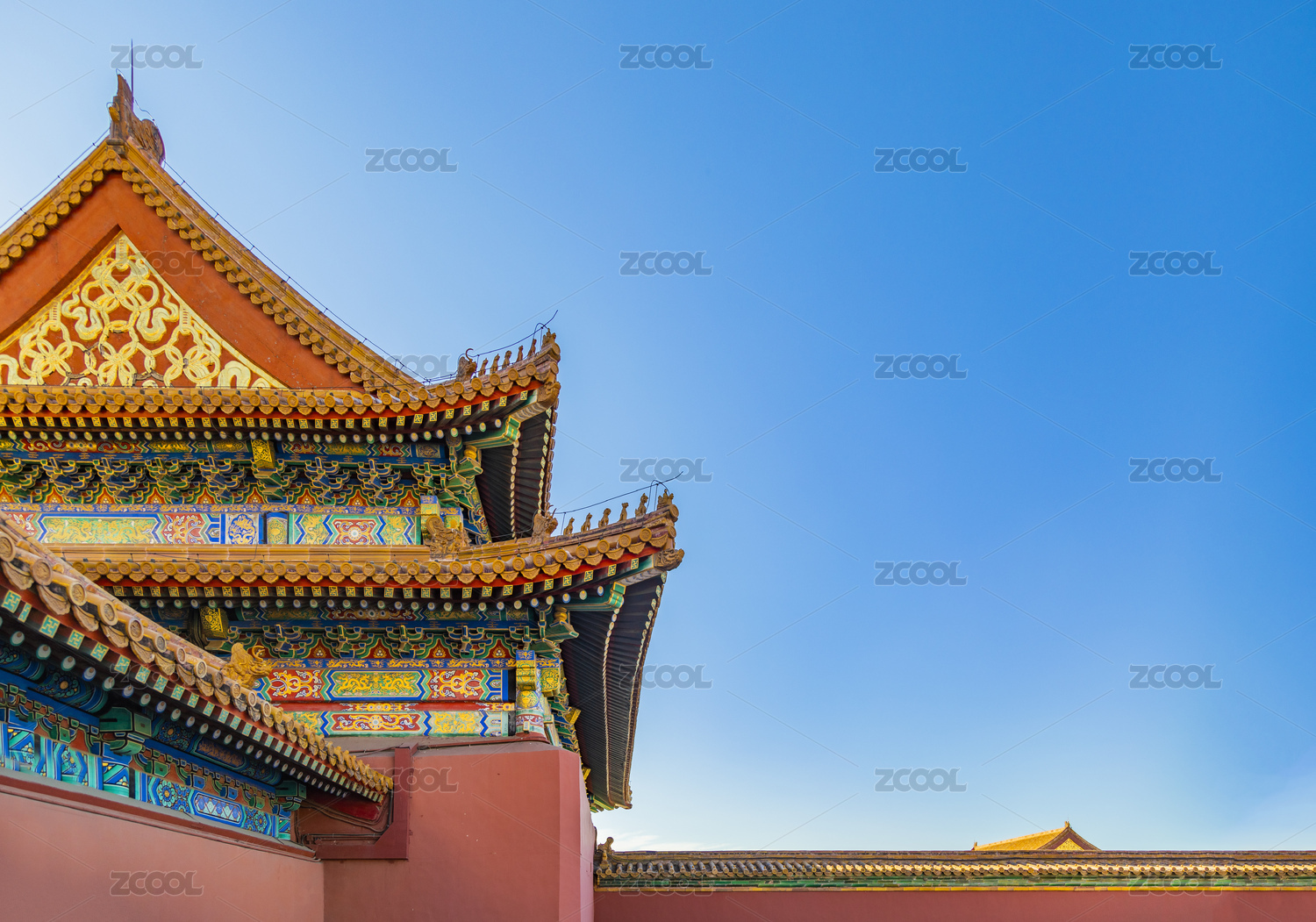 蓝天下的中国北京故宫博物馆的古宫殿建筑