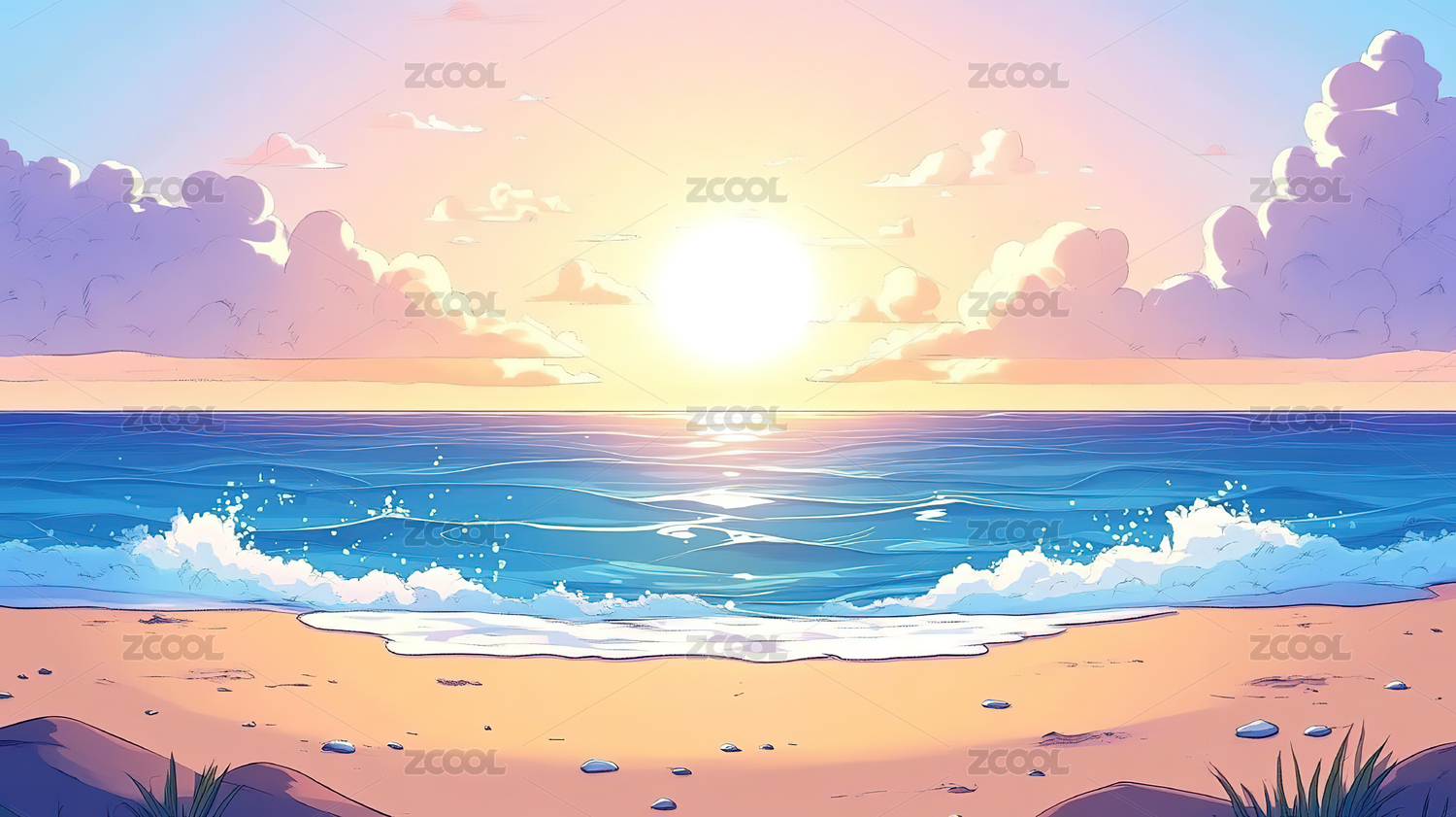 海边落日插画背景图