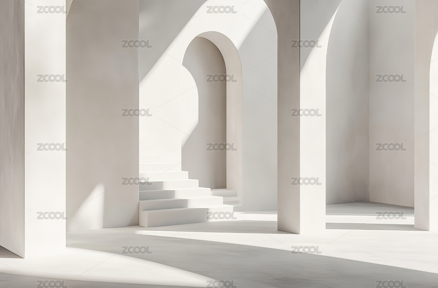 建筑,白色,背景,拱门,创造力,透视图,简单,现代,室内,走廊
