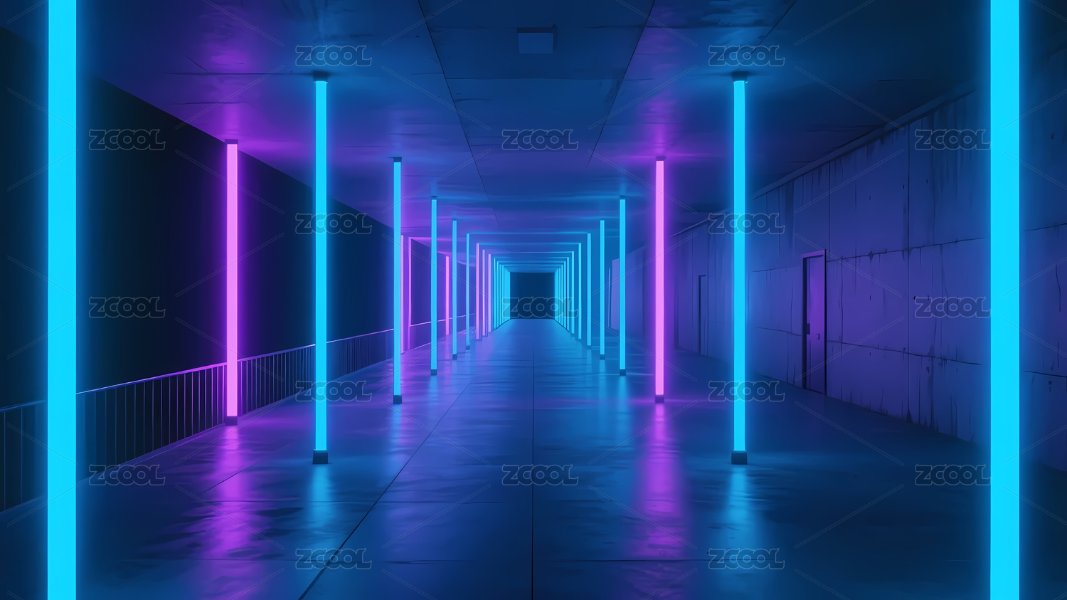 彩色灯光背景下的空走廊