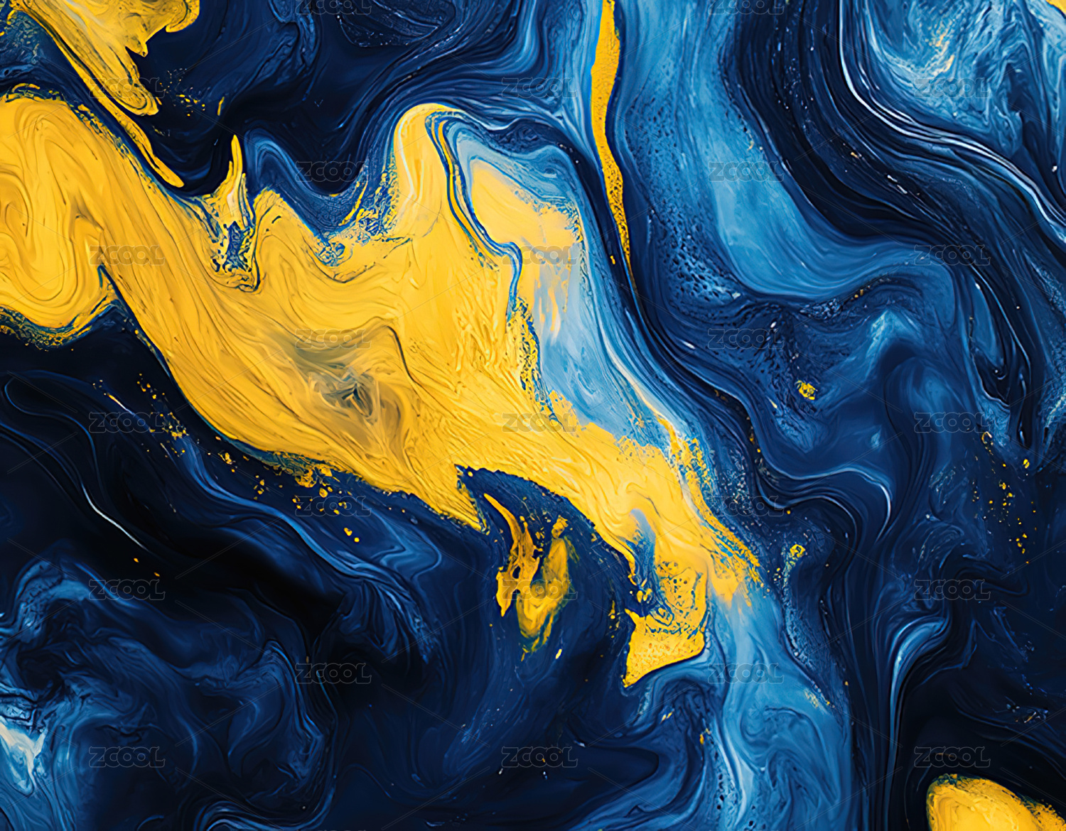 蓝金色颜料流体背景