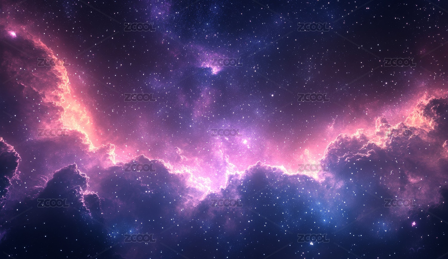 抽象星空紫色闪亮星云银河系和行星背景星系