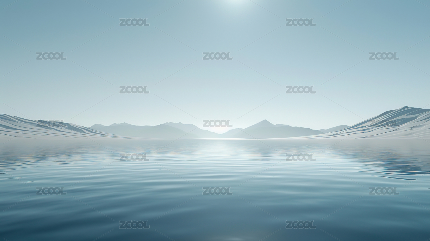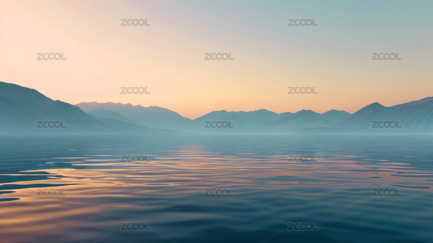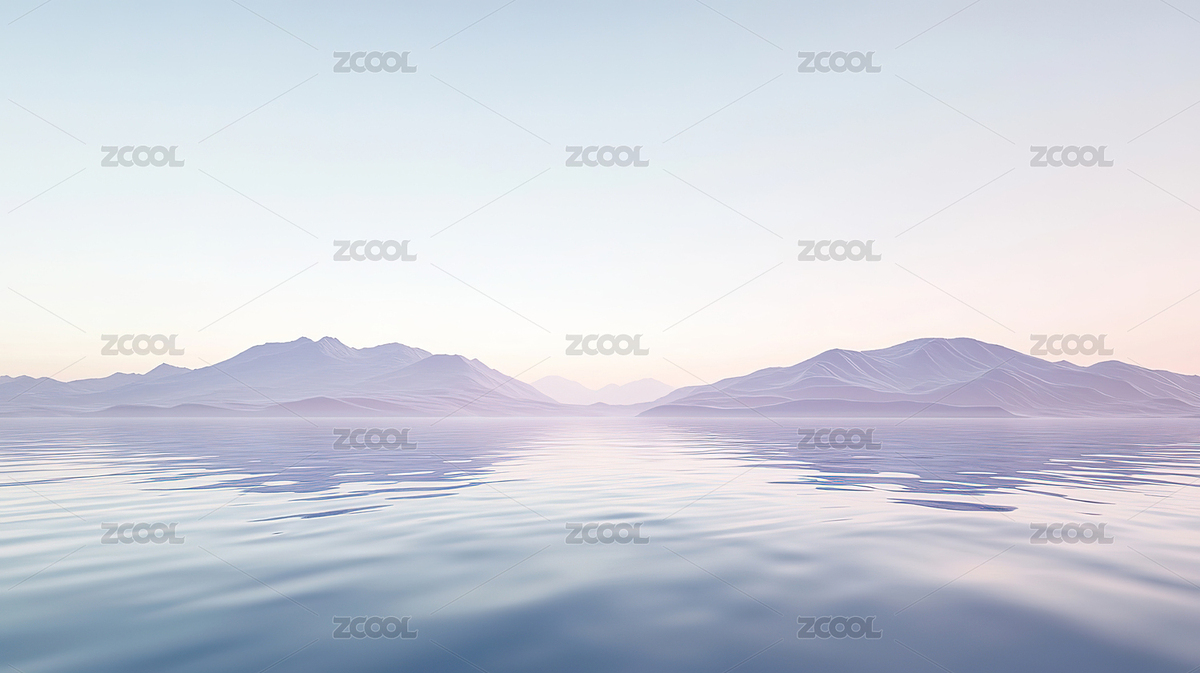 宁静湖面与远山剪影