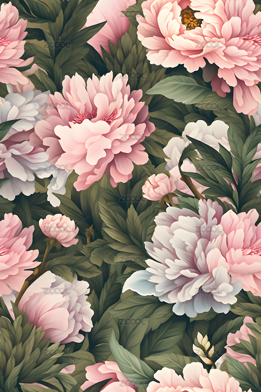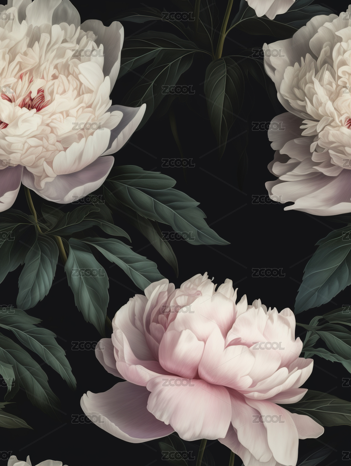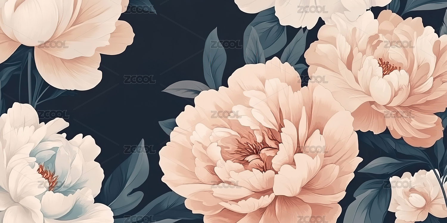 黑底粉牡丹花卉图案