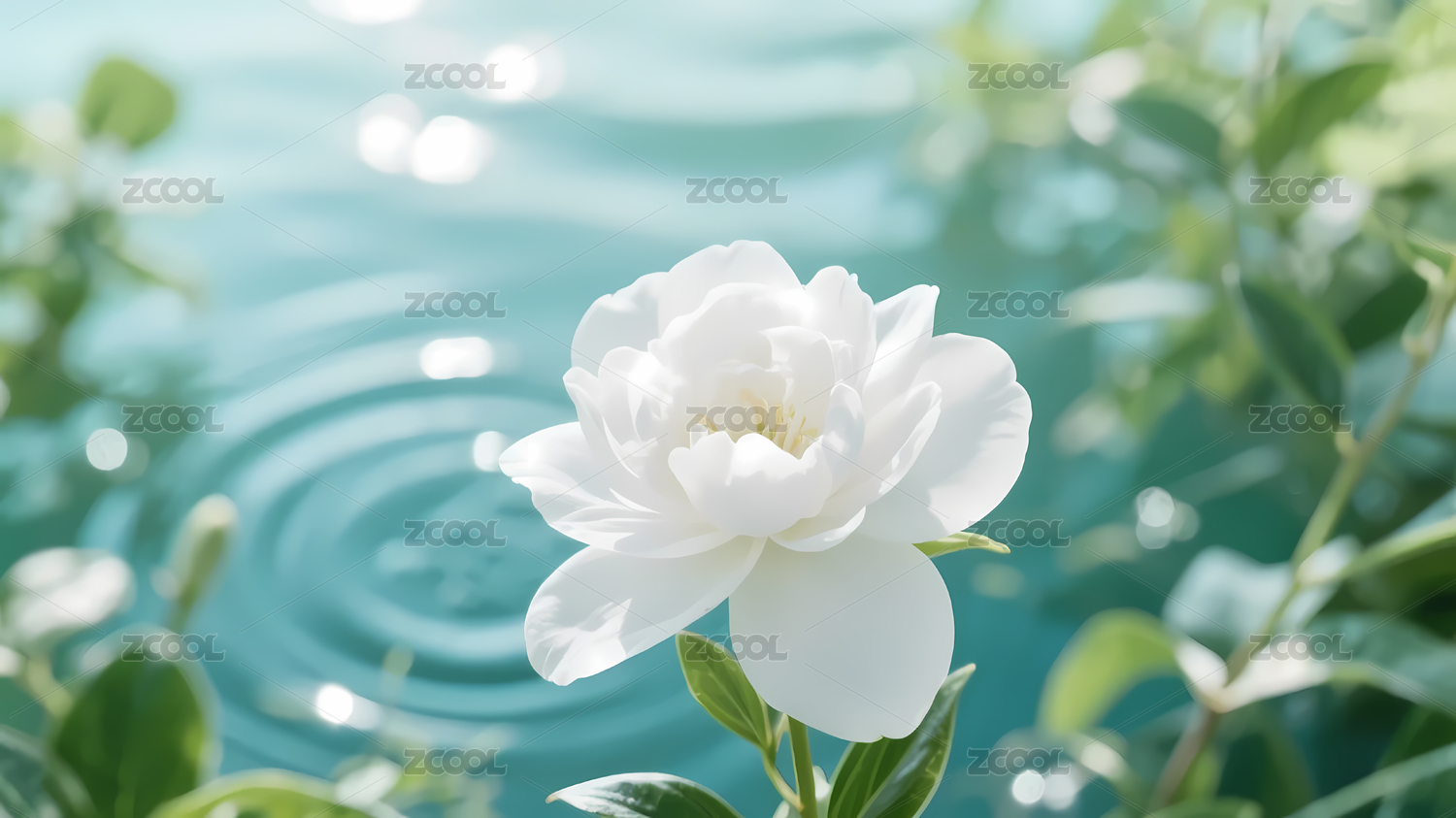 水波纹上的白色山茶花