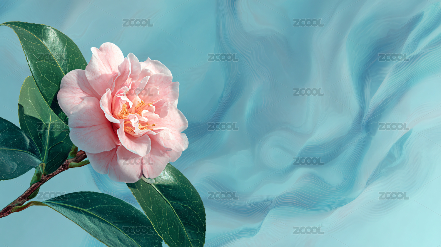 AIGC202402,纯净的水,干净的水,透明的水,水,水面,山茶花,鲜花,小清新,背景