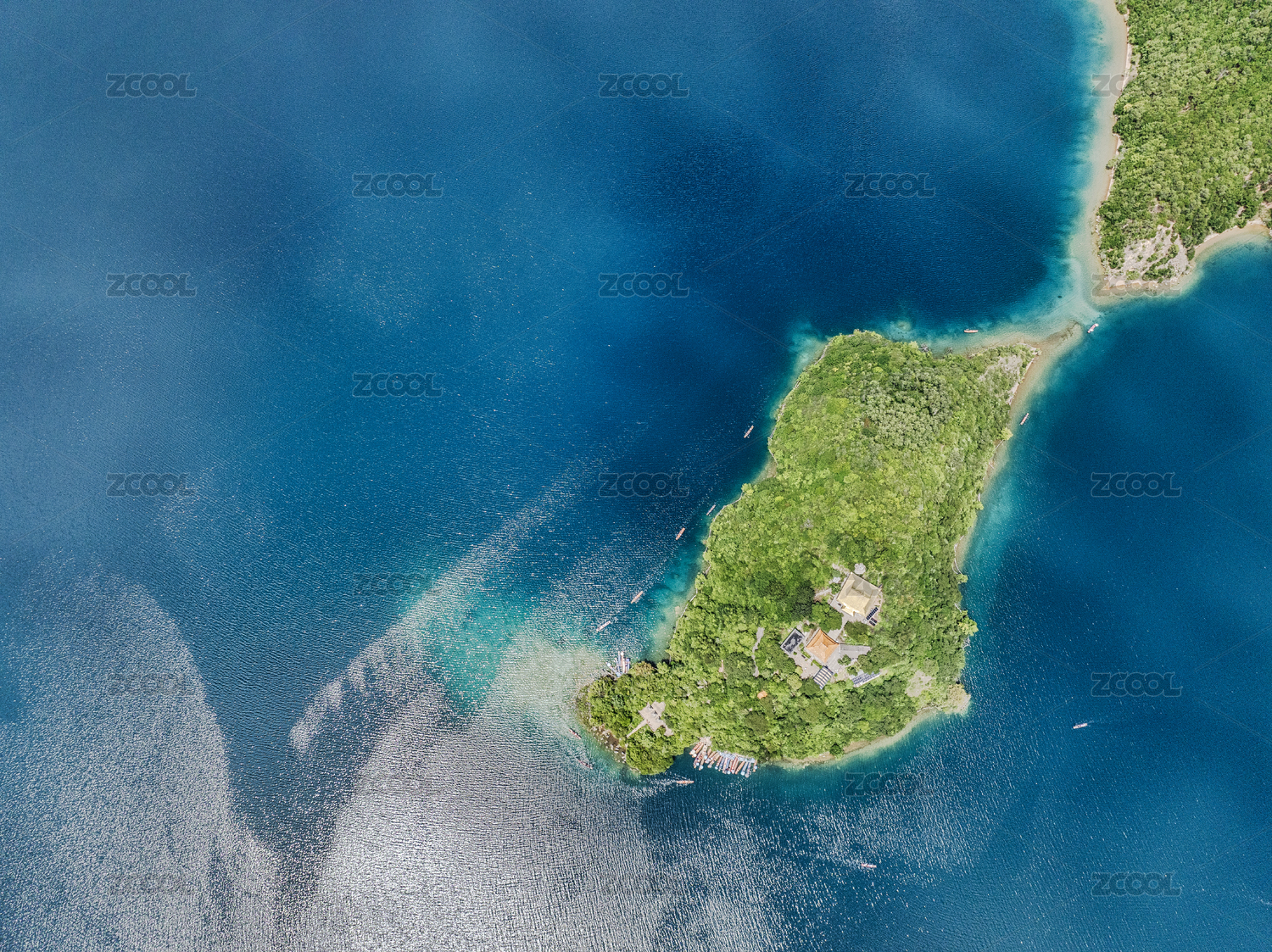 浙江杭州淳安县千岛湖自然风光鸟瞰航拍
