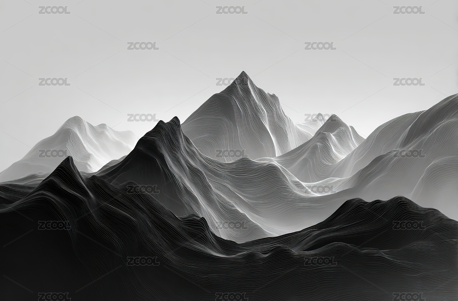 黑,白,山脉,风景,自然,云,雾,光影,对比,线条