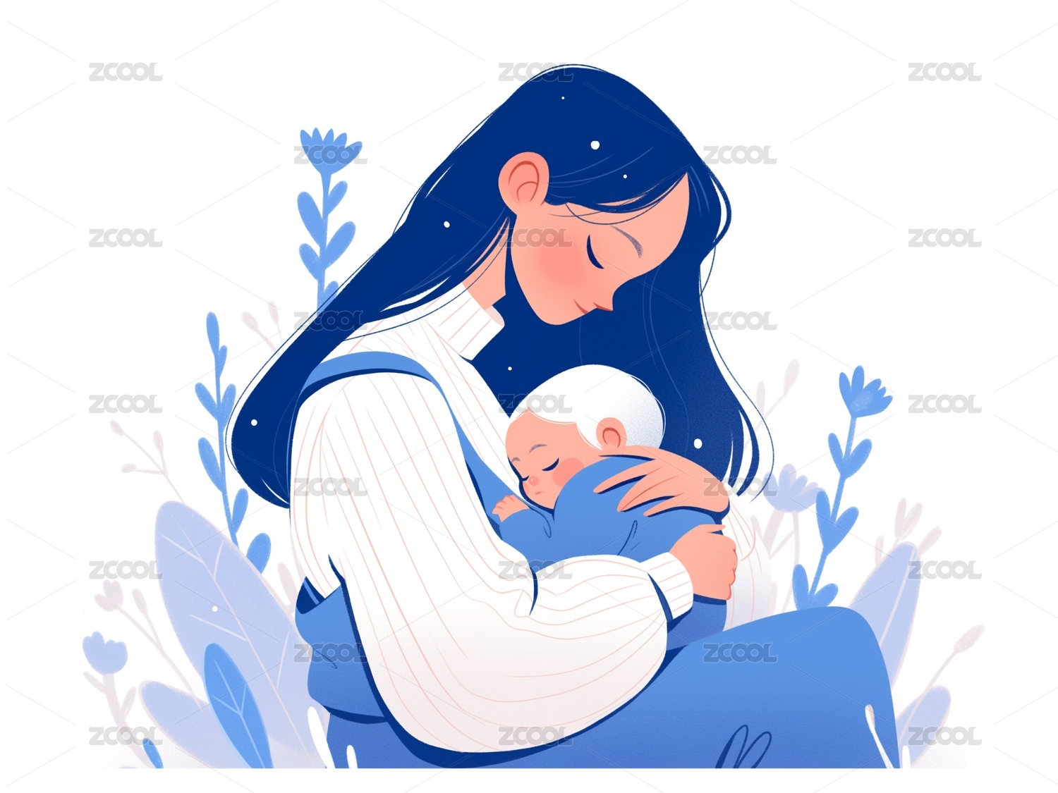月亮上的母子温馨母婴亲子母亲节人物插画
