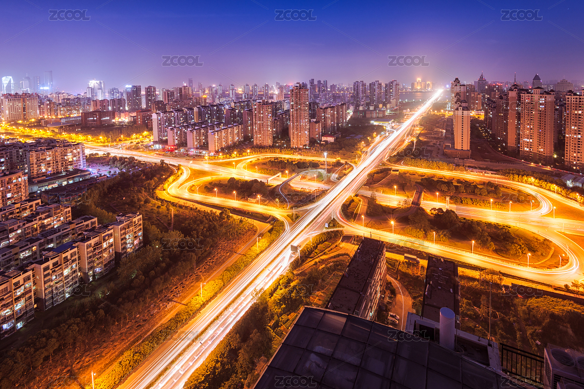 建筑,美丽的,桥,灯光,俯瞰,十字路口,立交桥,道路,高峰,城市景观