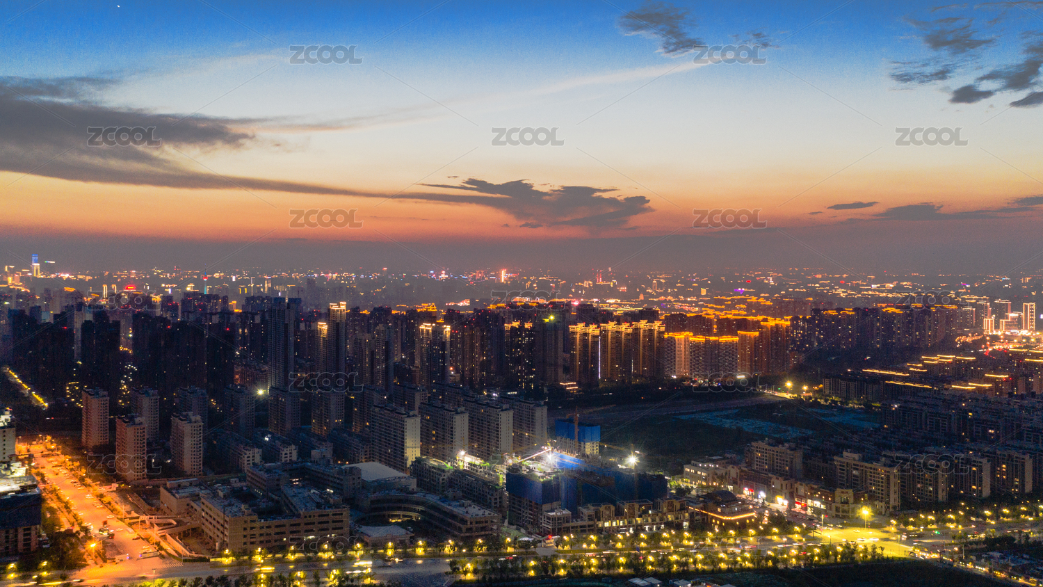 航拍中国河南省禹州市市区五彩斑斓的夜景