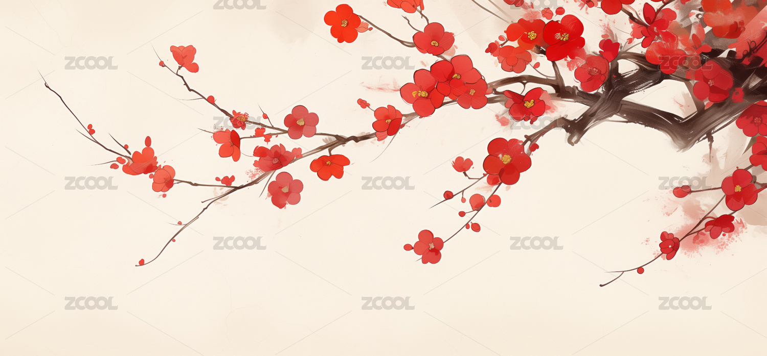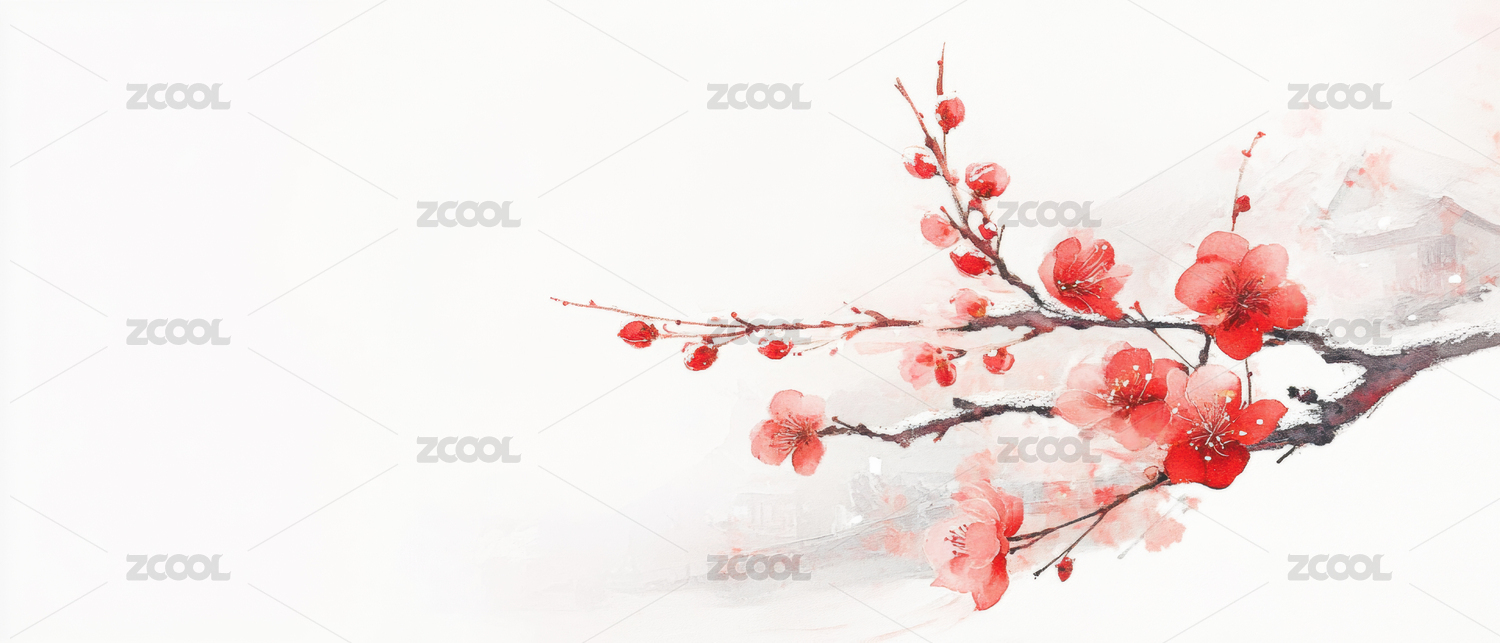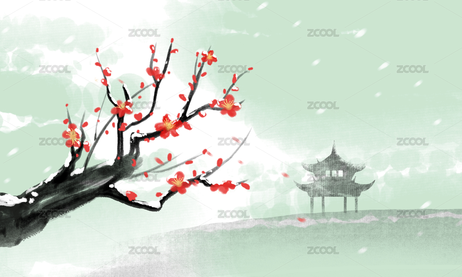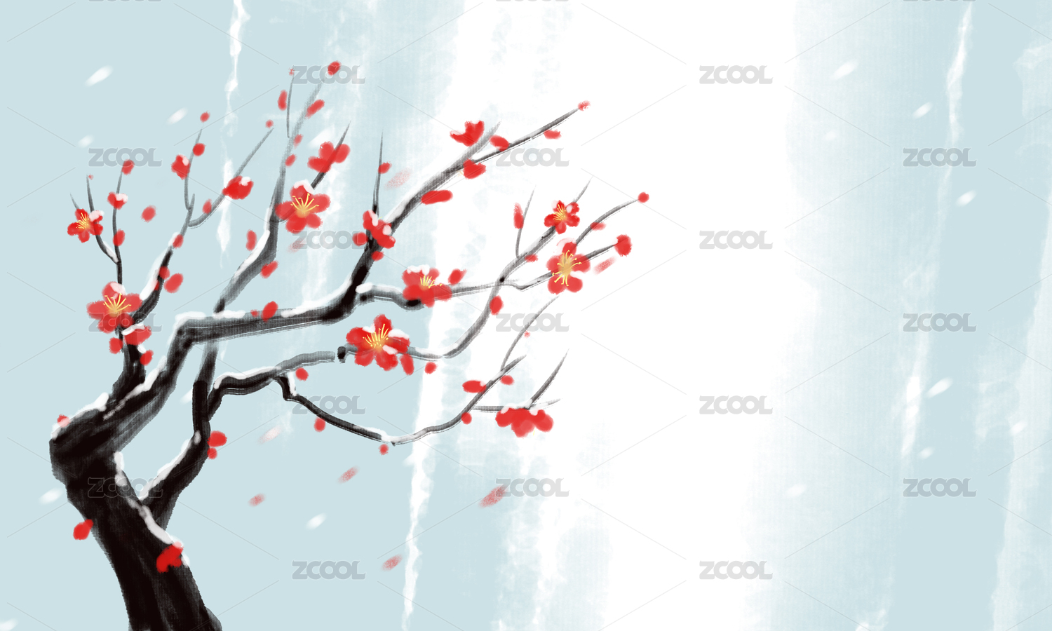 中国风抽象艺术中国传统入冬梅花诗意水墨画