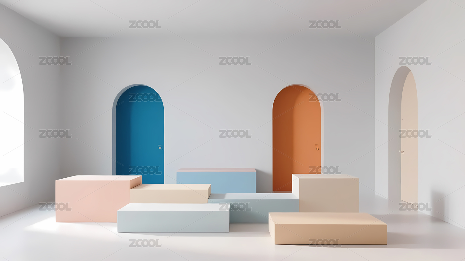 几何,空间,色块,墙壁,地板,线条,形状,色彩,拱门,圆形