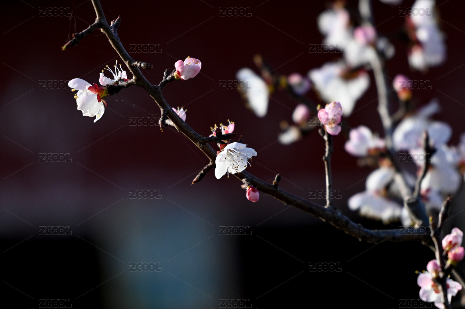 红背景下的梅花绽放