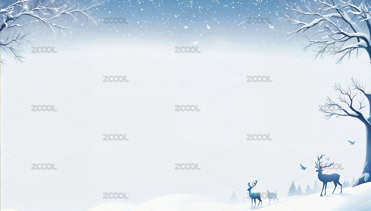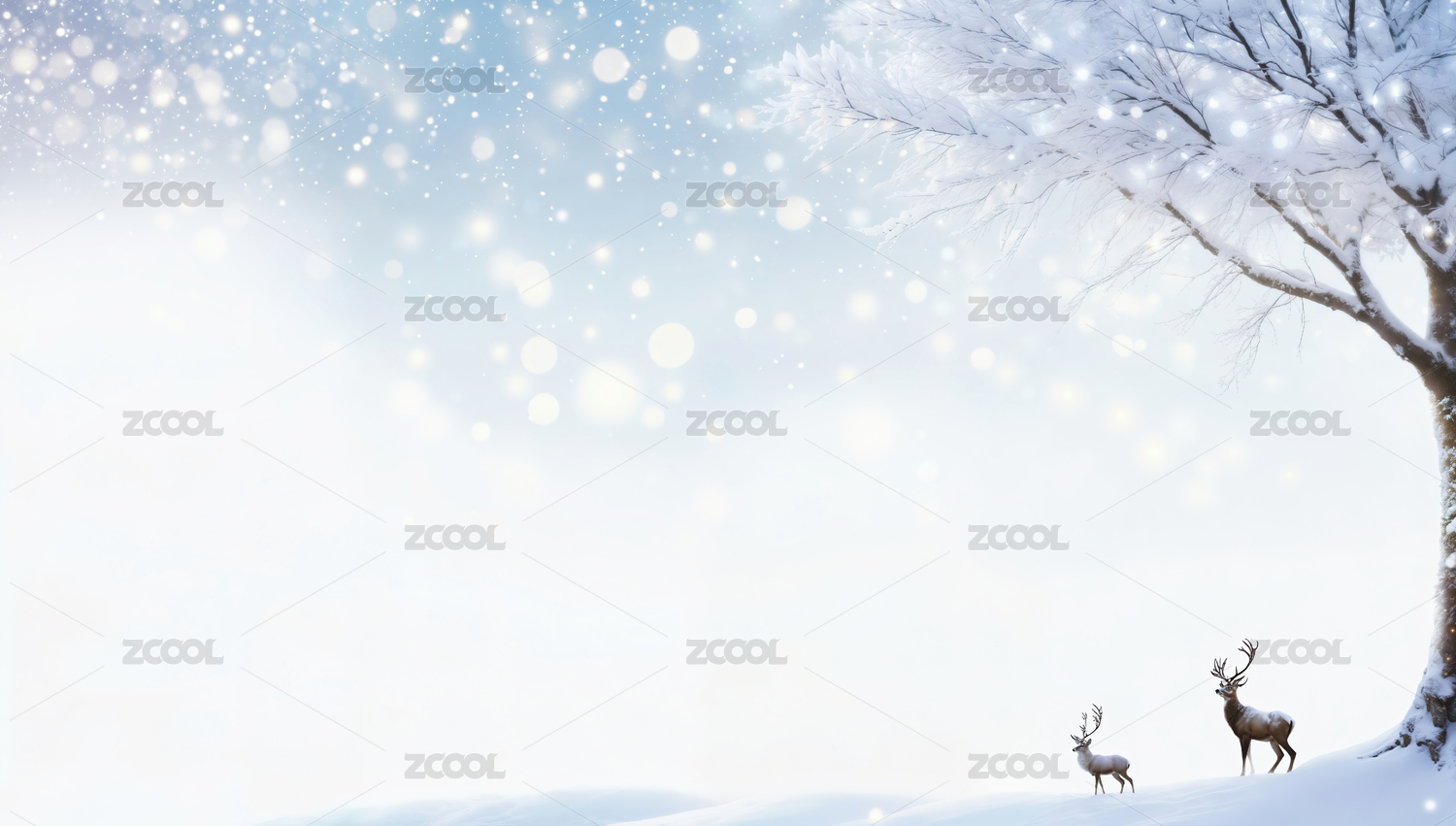 3d唯美风格冬季雪景一只鹿站在雪地里