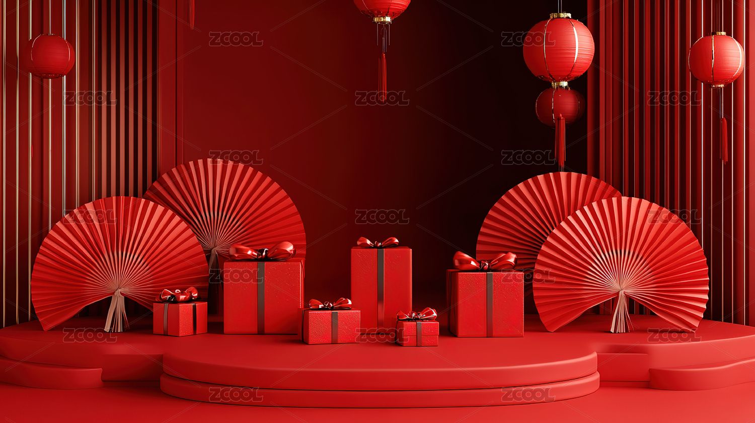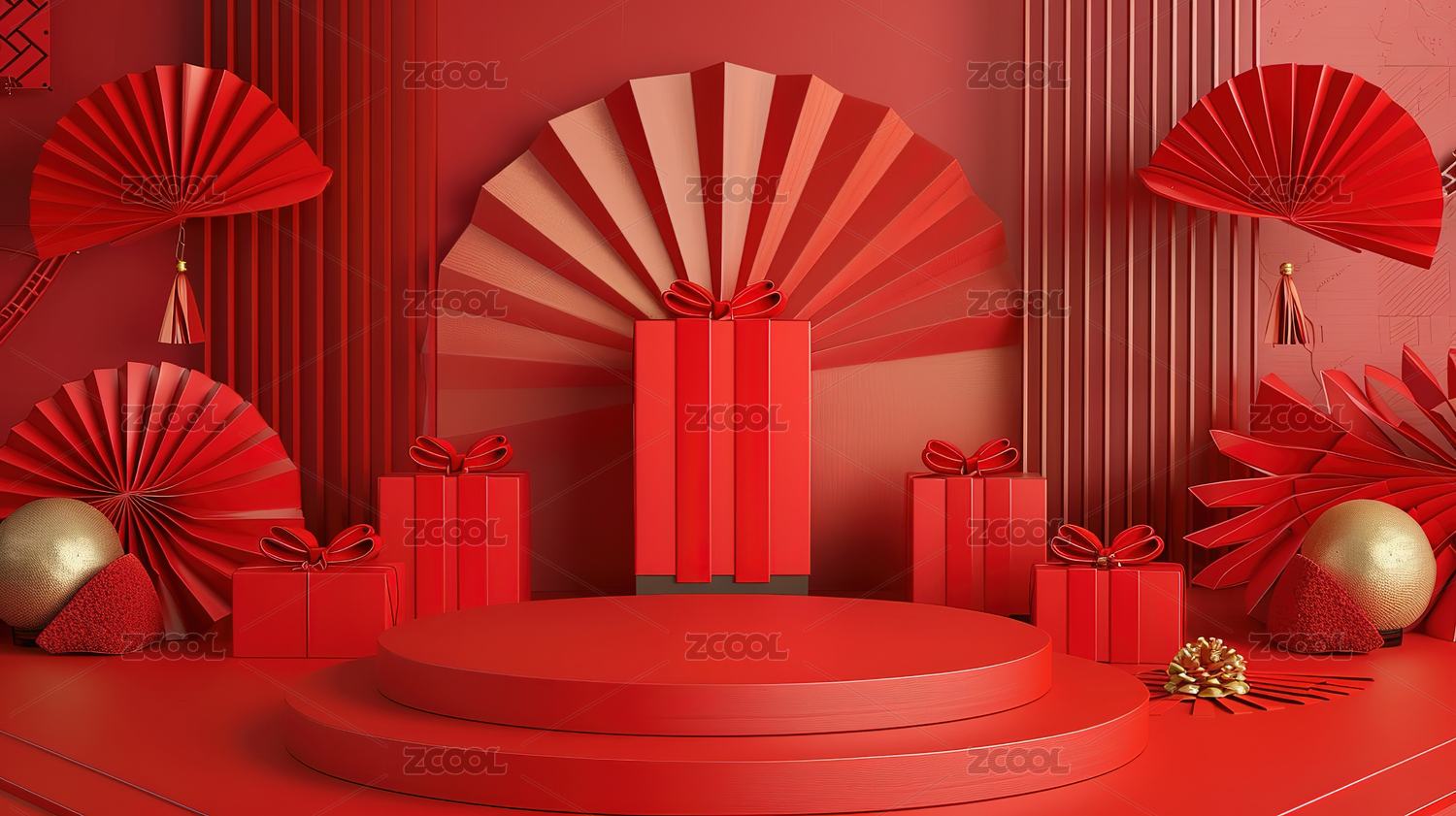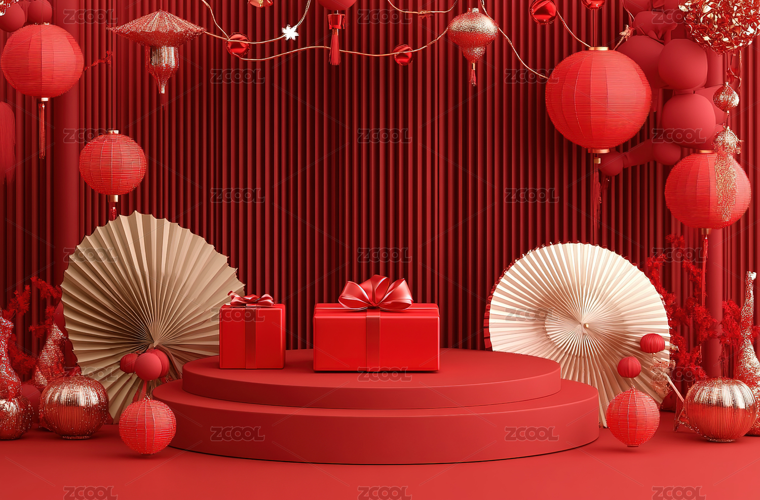 3D渲染红色春节风产品展台