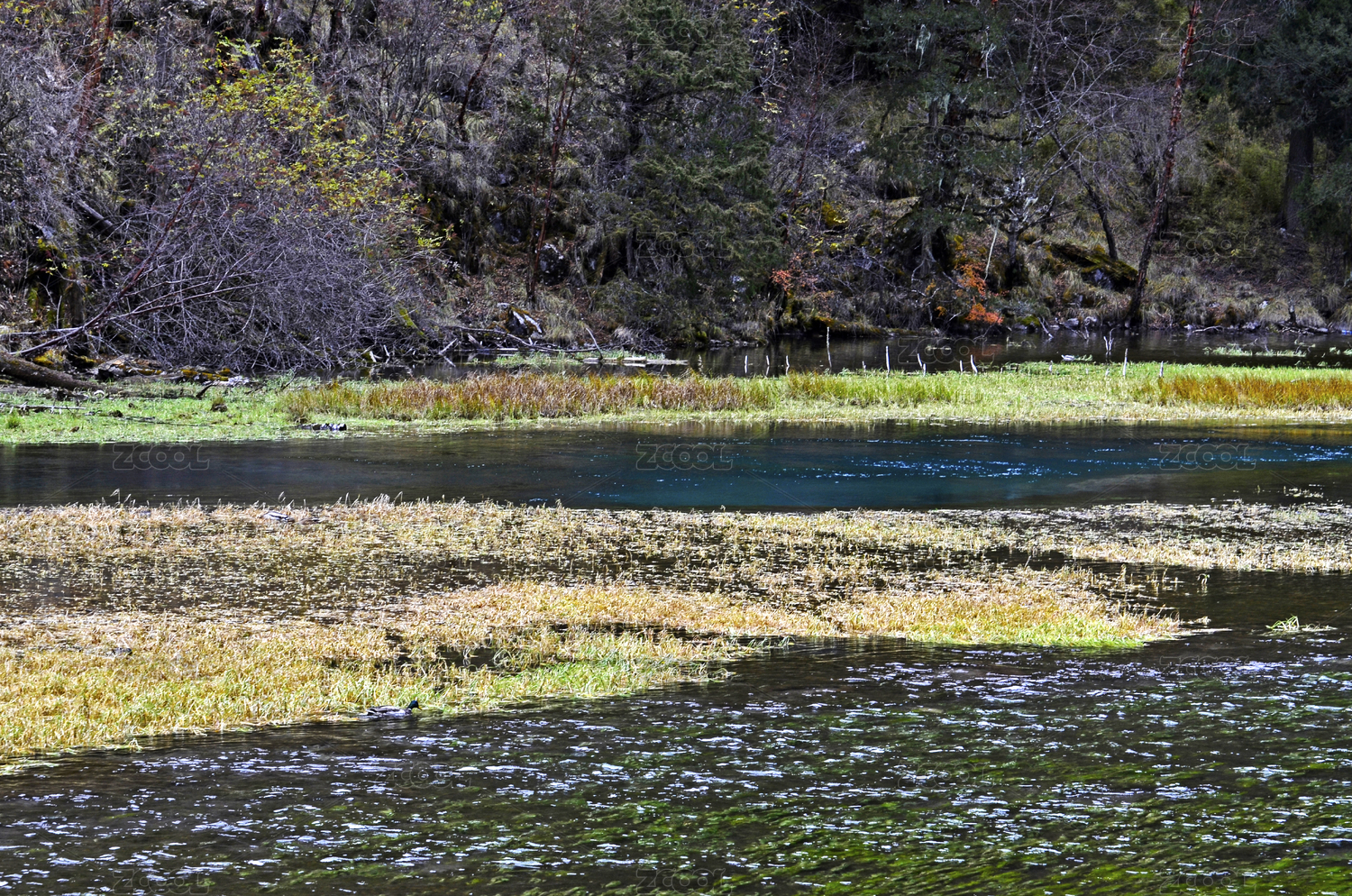 四川阿坝叠溪松坪沟秋色水面光影自然风光