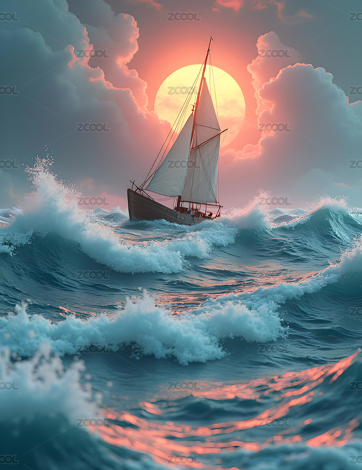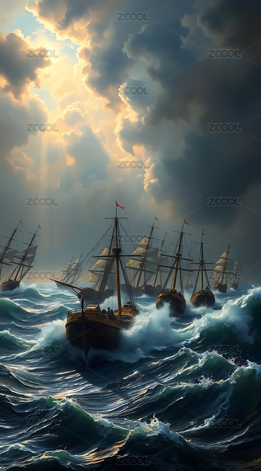 海洋,船只,行驶,立体,插画,探险,航线,冒险,航行,贸易