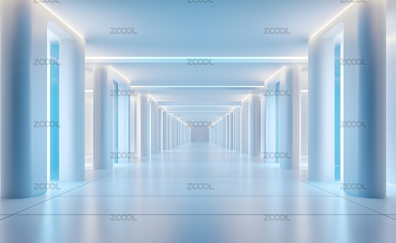 蓝色发光走廊通道