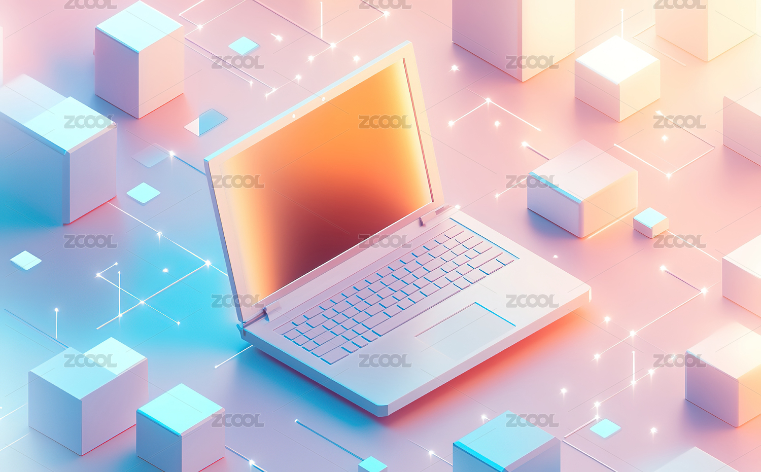 粉蓝渐变色的笔记本电脑图标,柔和色调