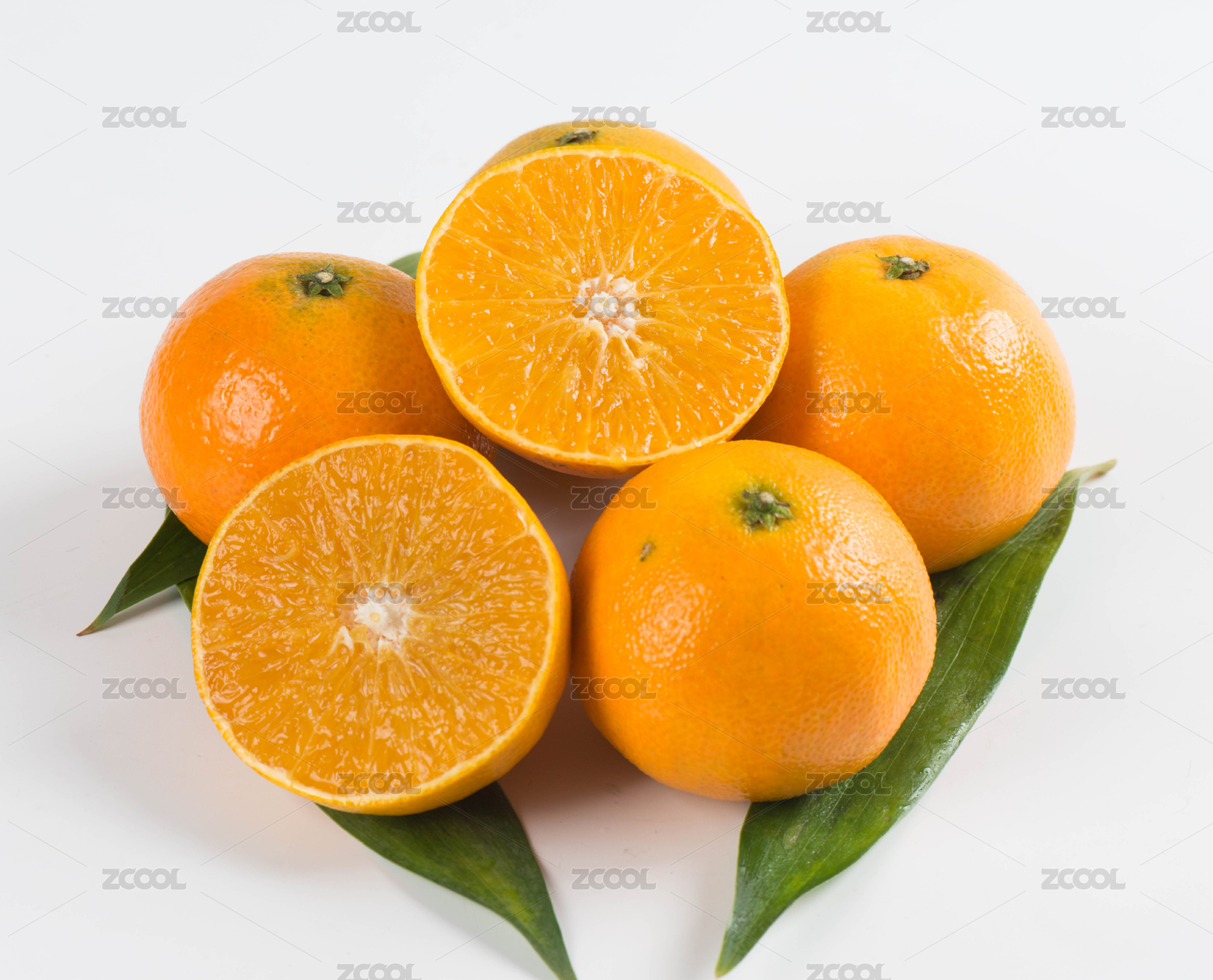 新鲜带叶的桔子