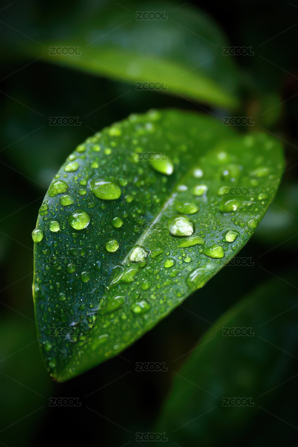 清晨牡丹花叶子上的露珠晶莹剔透特写