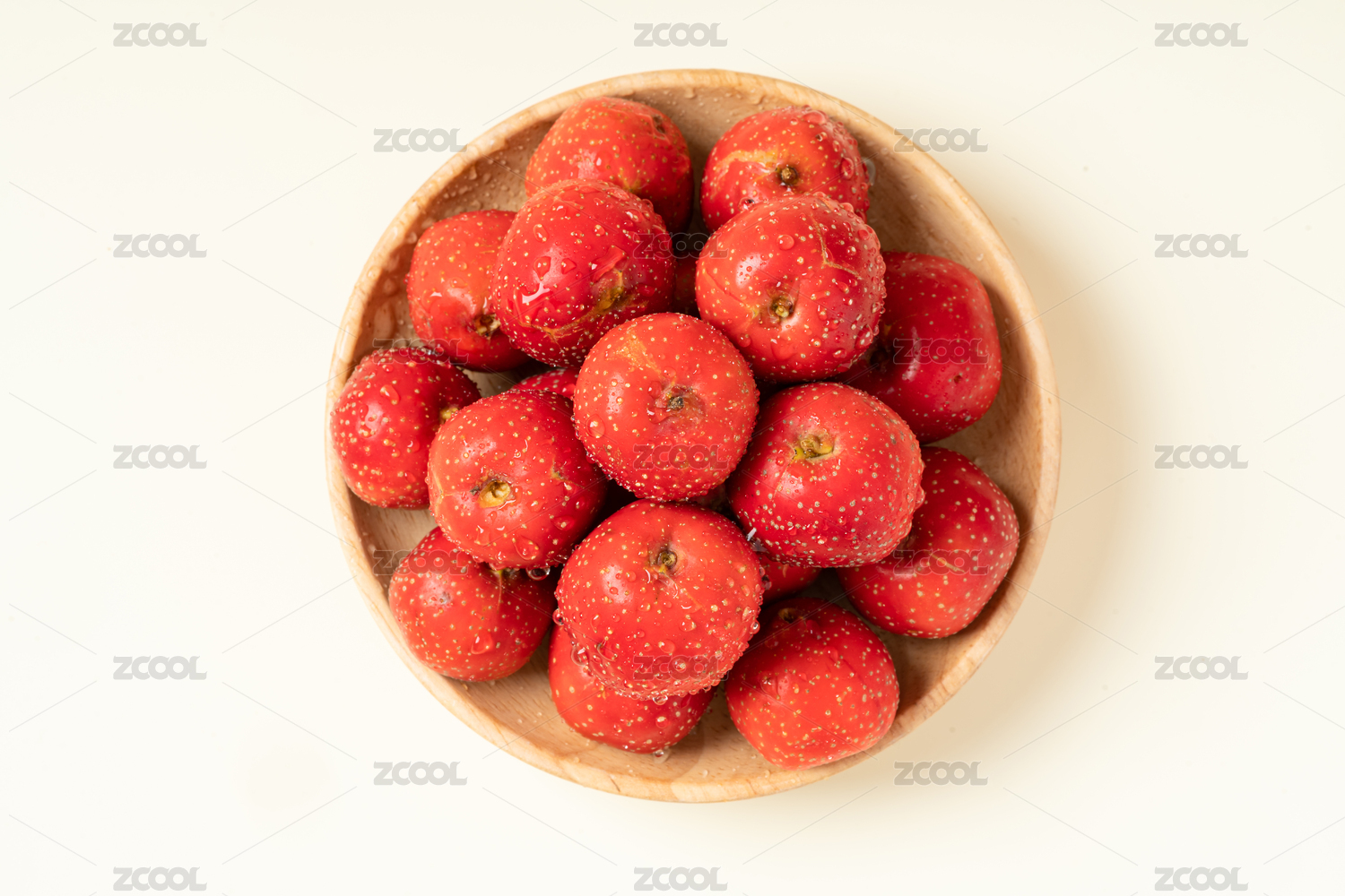 白色背景上摆放着的新鲜的红山楂