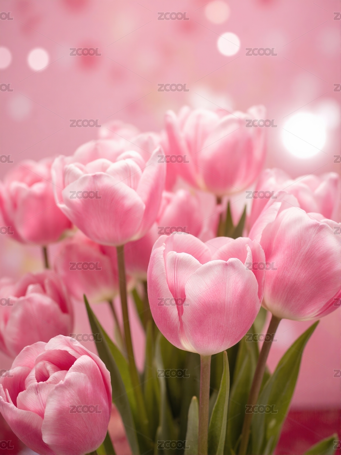 粉白郁金香粉红底