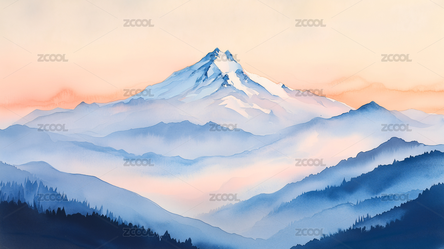 水彩雪山绘画