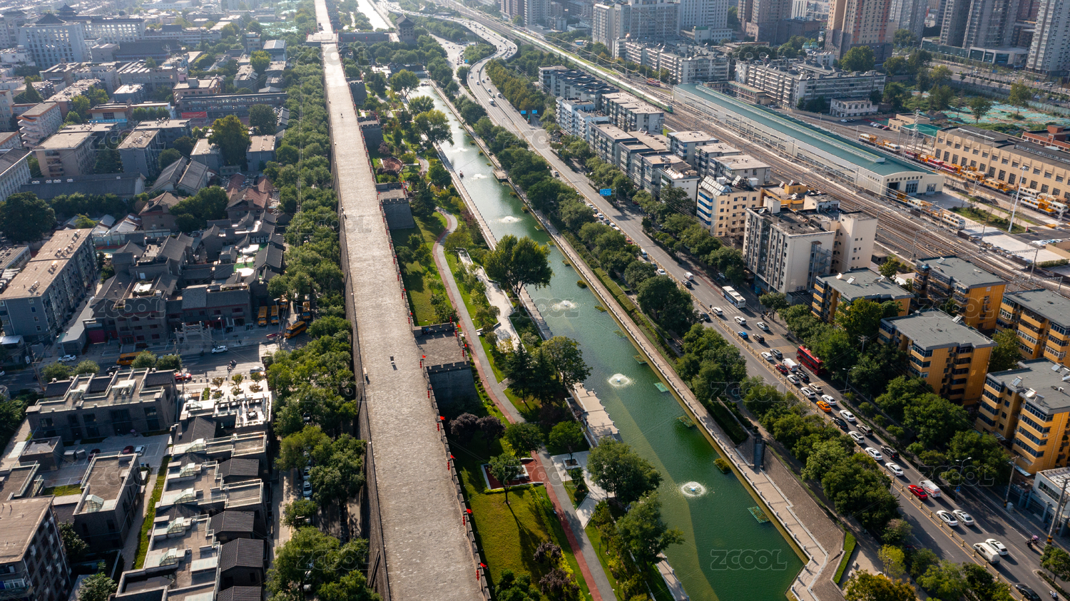航拍中国河南禹州市颍河上的桥和两岸景观