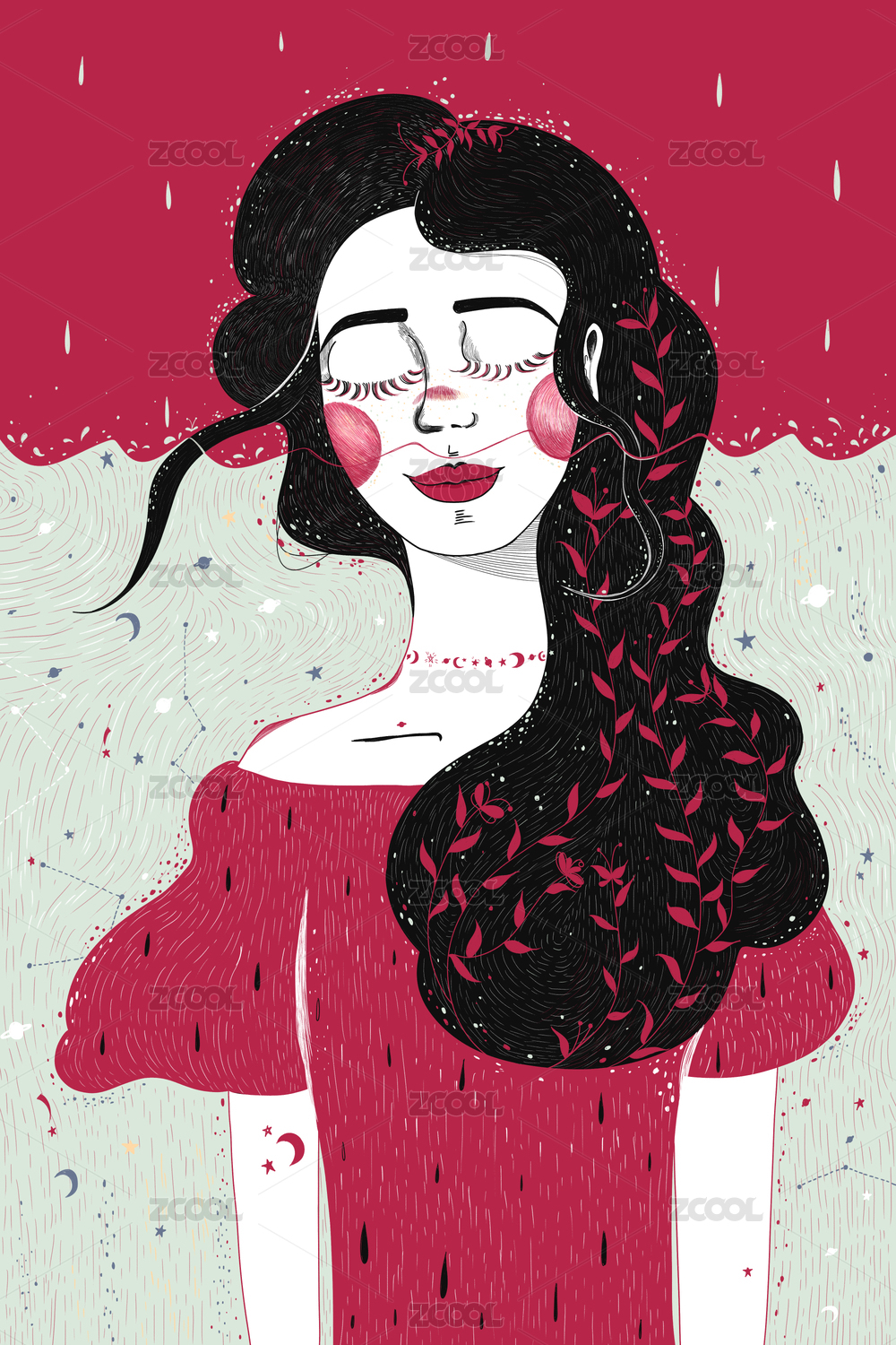 插图,插画,壁纸,背景,创作,设计,装饰,艺术,图案,女孩