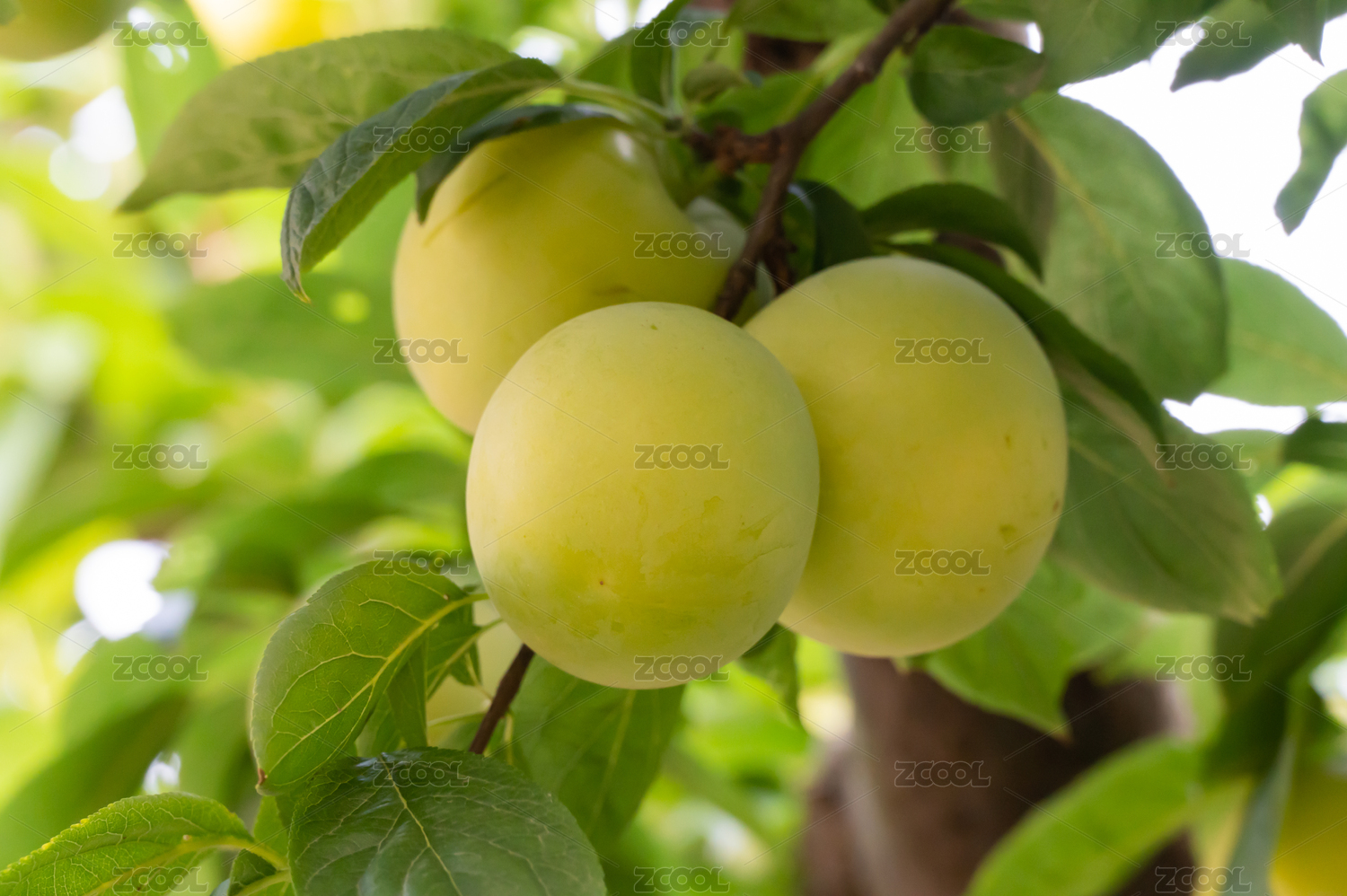 黄绿色的李子挂满枝头