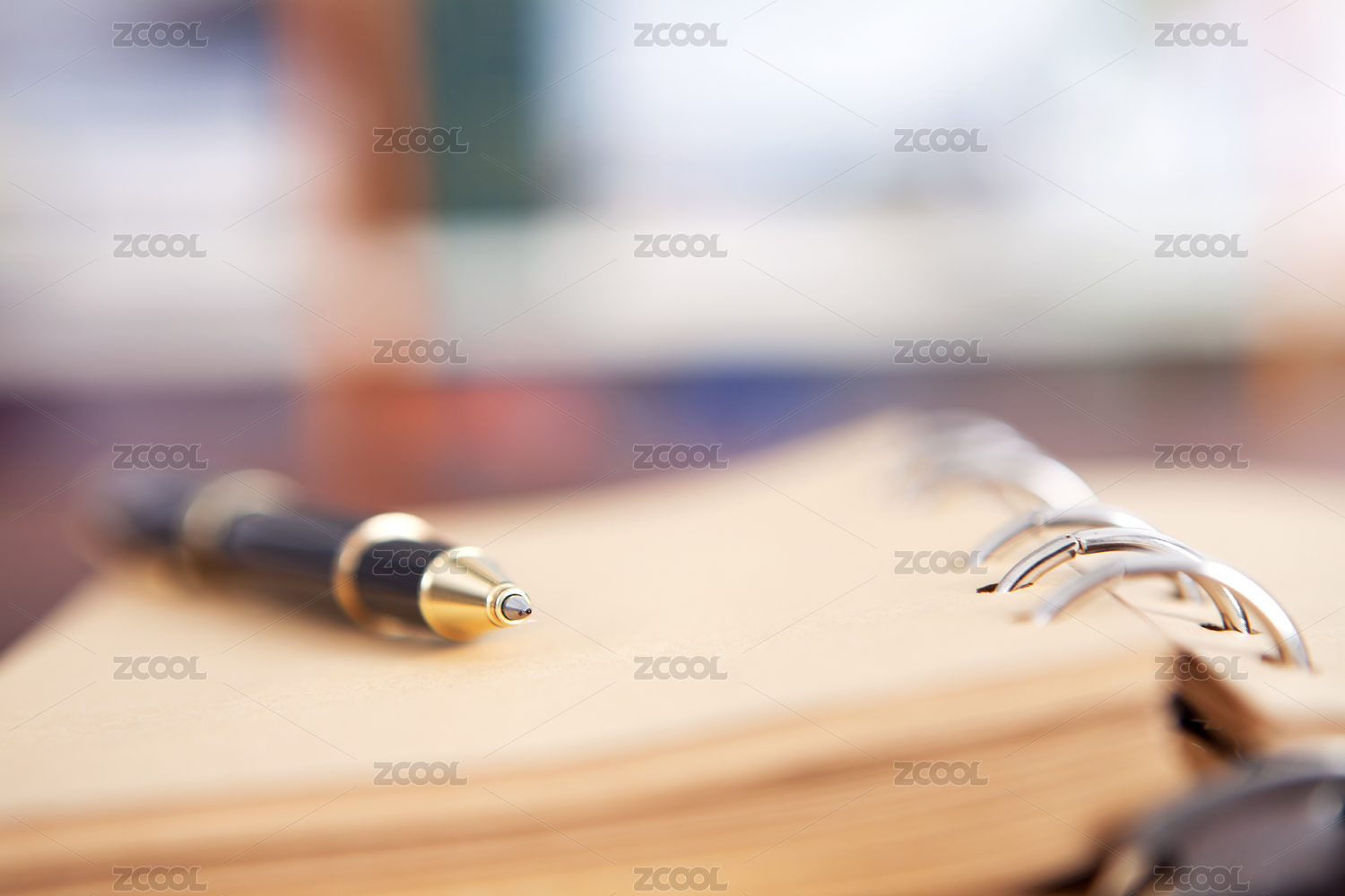 木纹桌面上摆放的手机咖啡等休闲办公物品