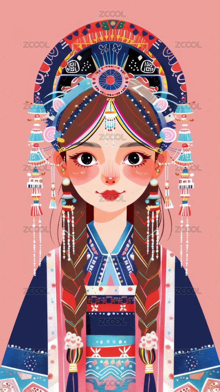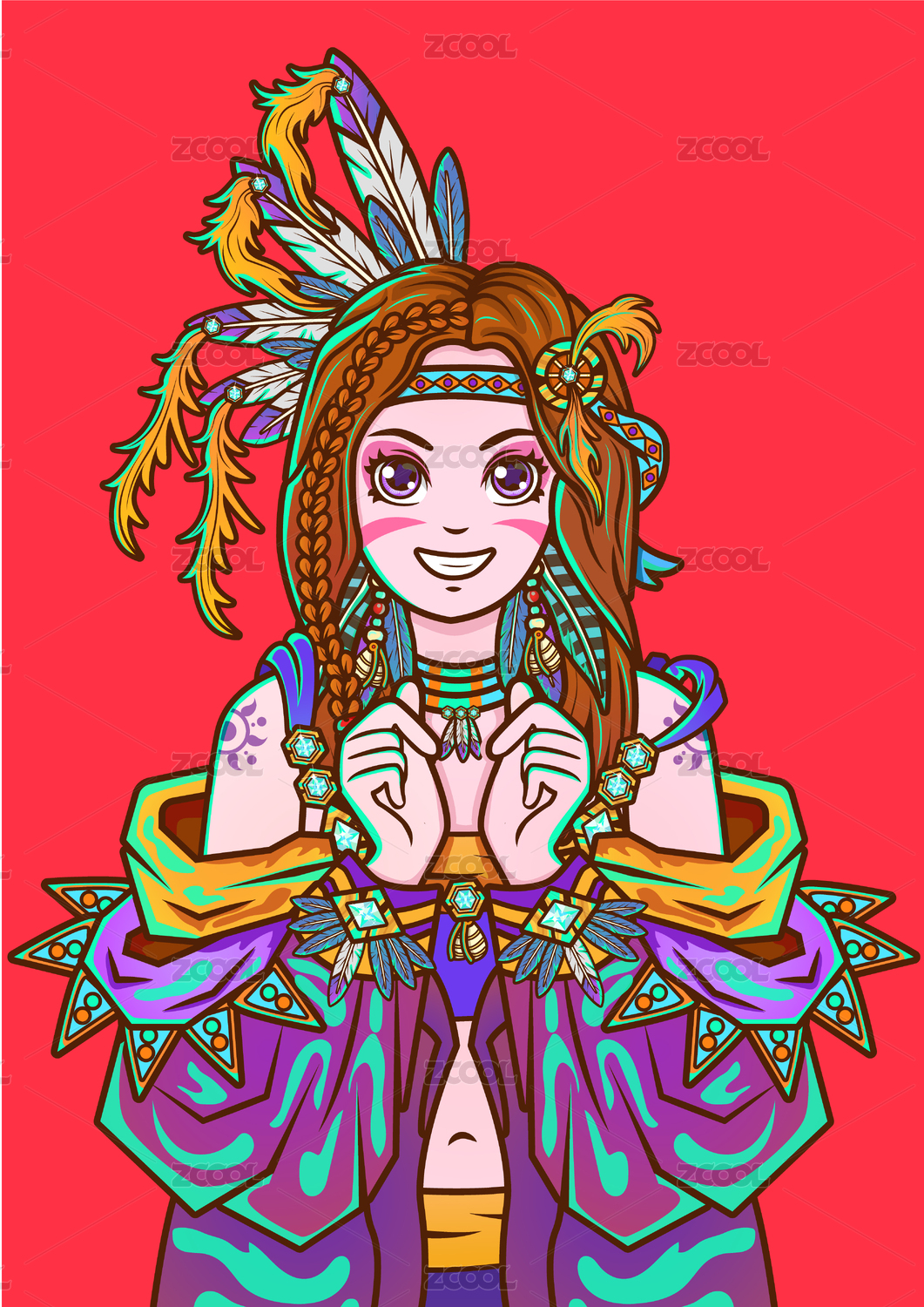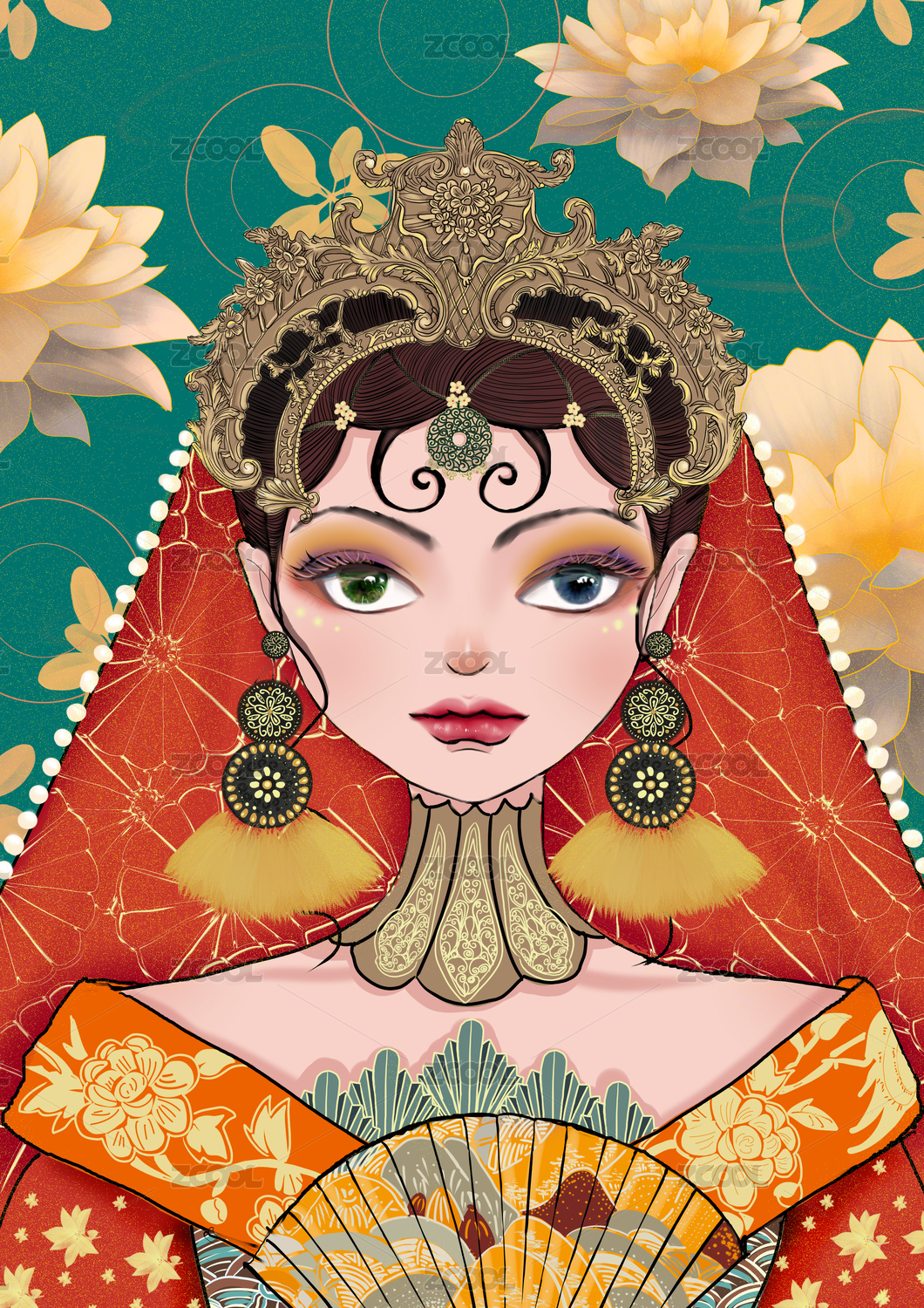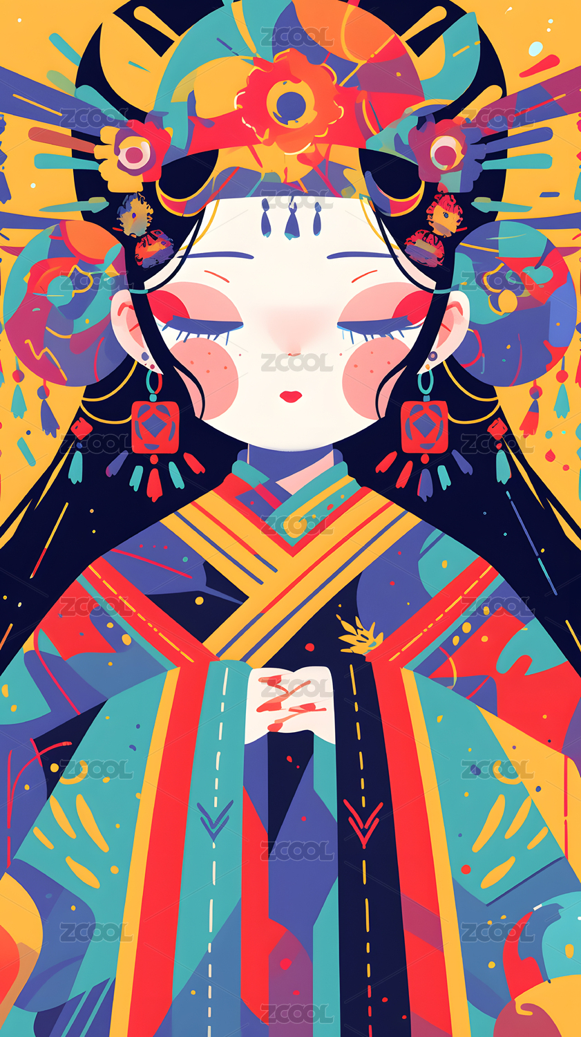 卡通二次元星座花神雪花孔雀装扮的复古少女
