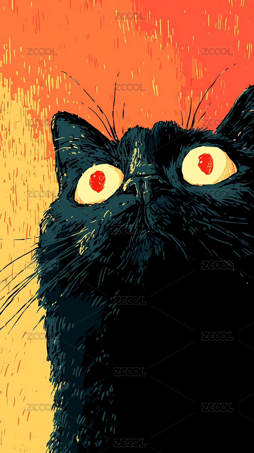 现代彩色猫猫油画插画背景海报抽象装饰画