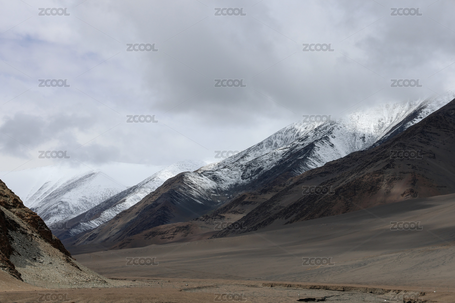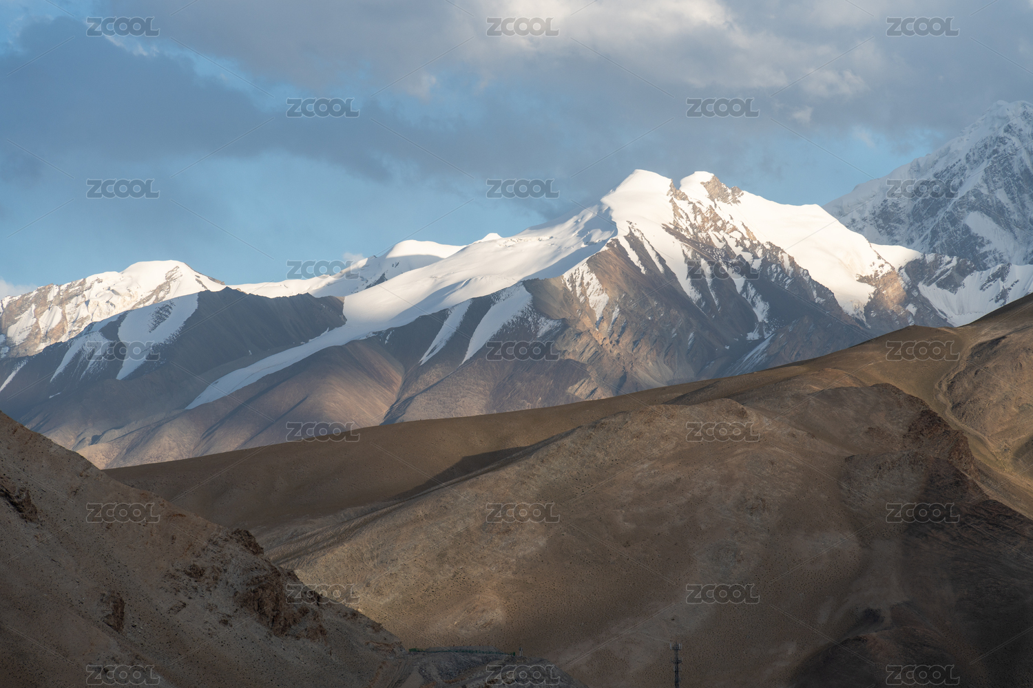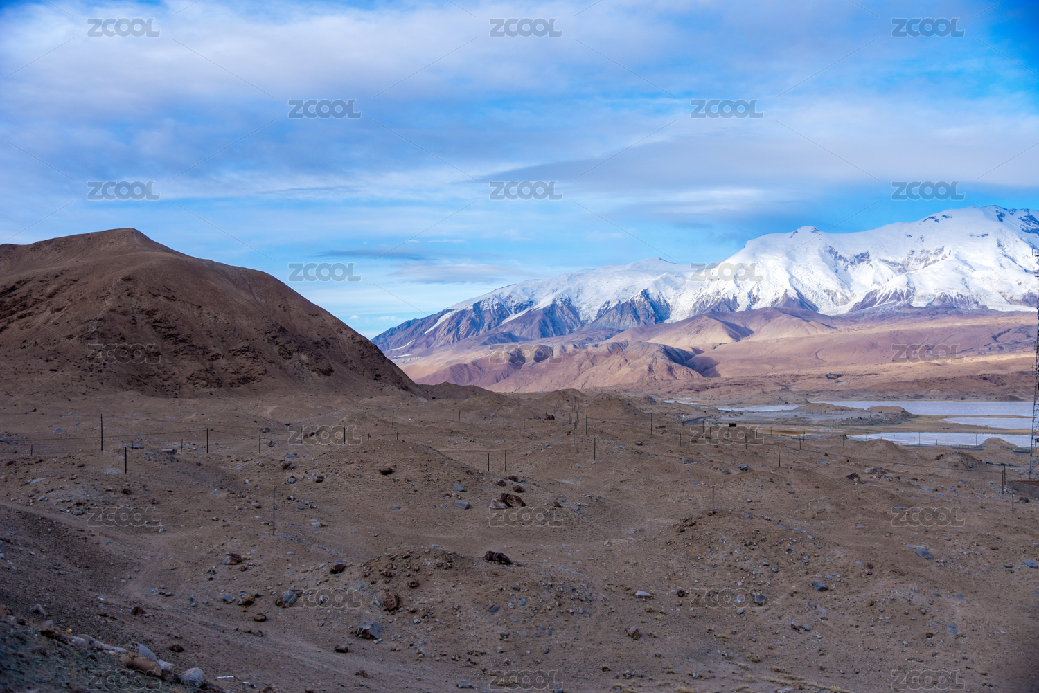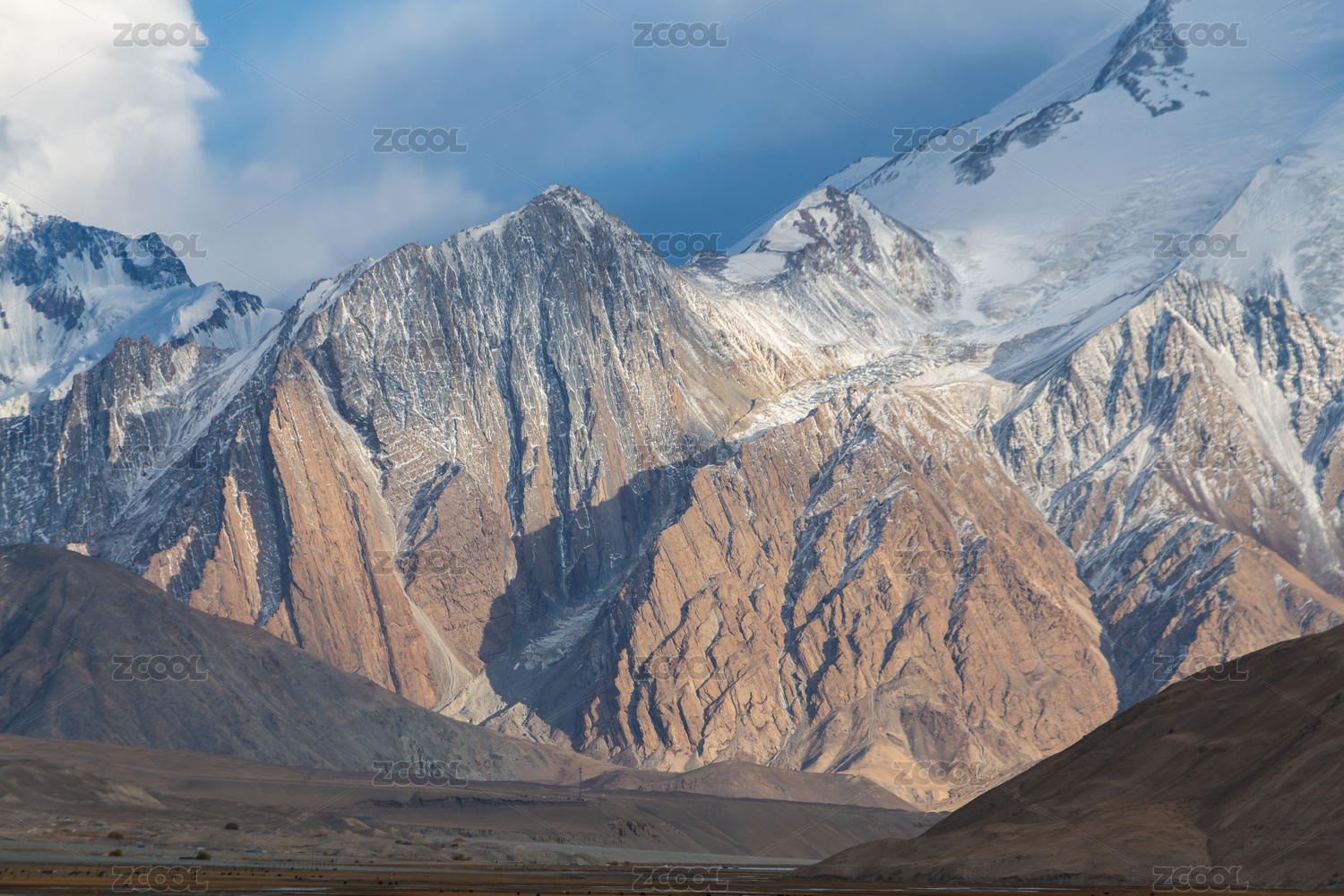 中国新疆喀什至塔县塔什库尔干河谷边的雪山