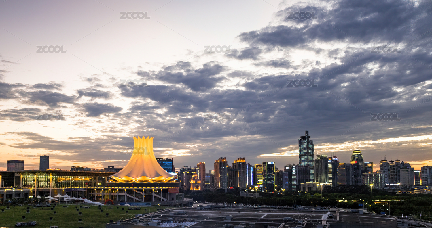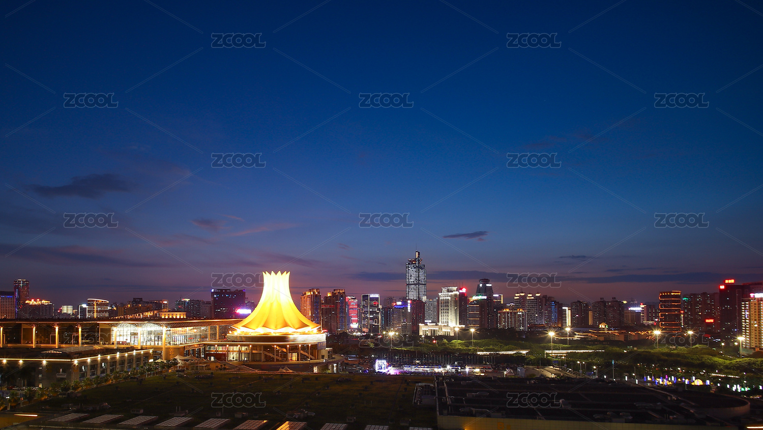 风光,傍晚,灯光,城市,建筑,高楼,湖,湖面,湖水,倒影