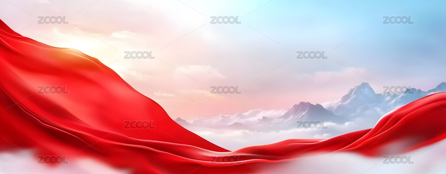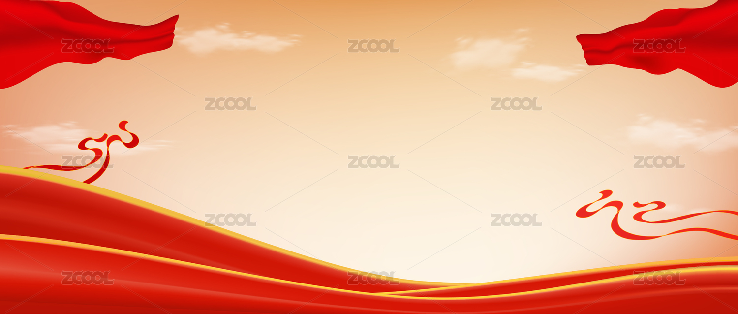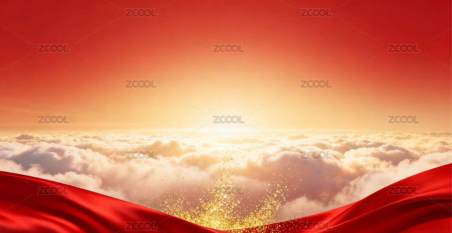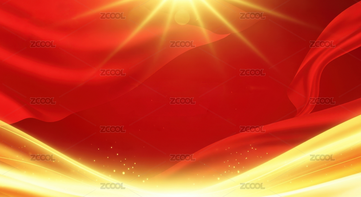 通用金色天空红色红旗丝绸背景签名墙展板主