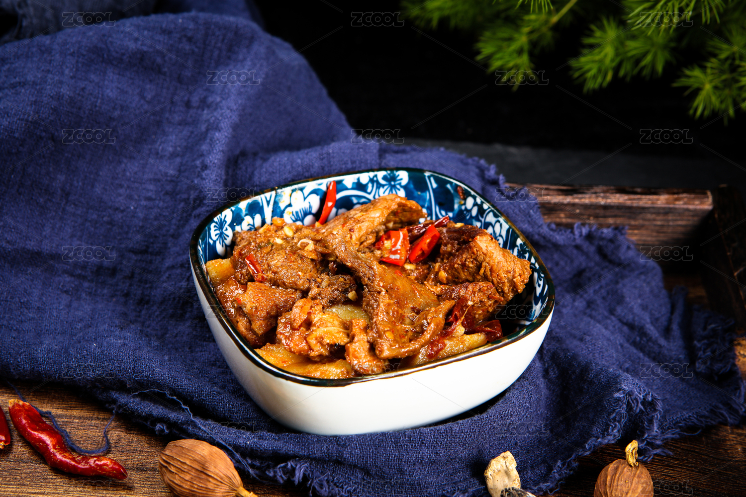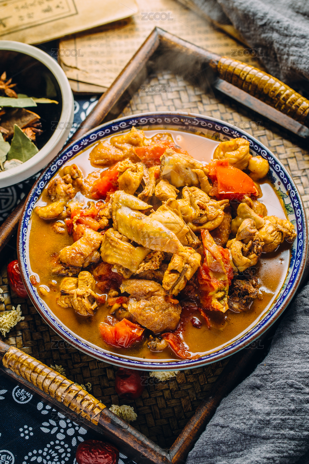 中式背景的番茄鸡