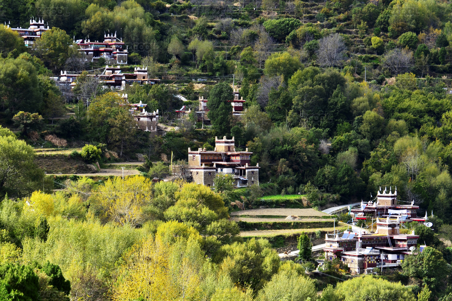 甘孜州丹巴甲居藏寨藏族民居自然景观